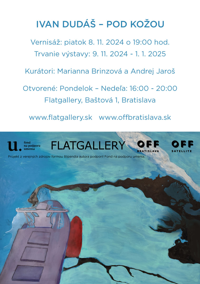 Projekt Ivana Dudáša – Po kožou prezentovaný vo Flatgallery vznikal ako experiment, ktorý skúma možnosti maľby, tetovania a záberov/fotografií z médií. Vychádza z aktuálnych udalostí posledných rokov akými sú klimatická kríza, Covid/post Covid, vojenské konflikty, migračná kríza a utečenectvo. Reaguje na globálnu krízu ako aj lokálne špecifiká a otázky, ktoré sa nám, či chceme alebo nechceme, dostanú „pod kožu“. Výstava je súčasťou 15. ročníka Festivalu OFF Bratislava s témou PERSONA INCOGNITA.
