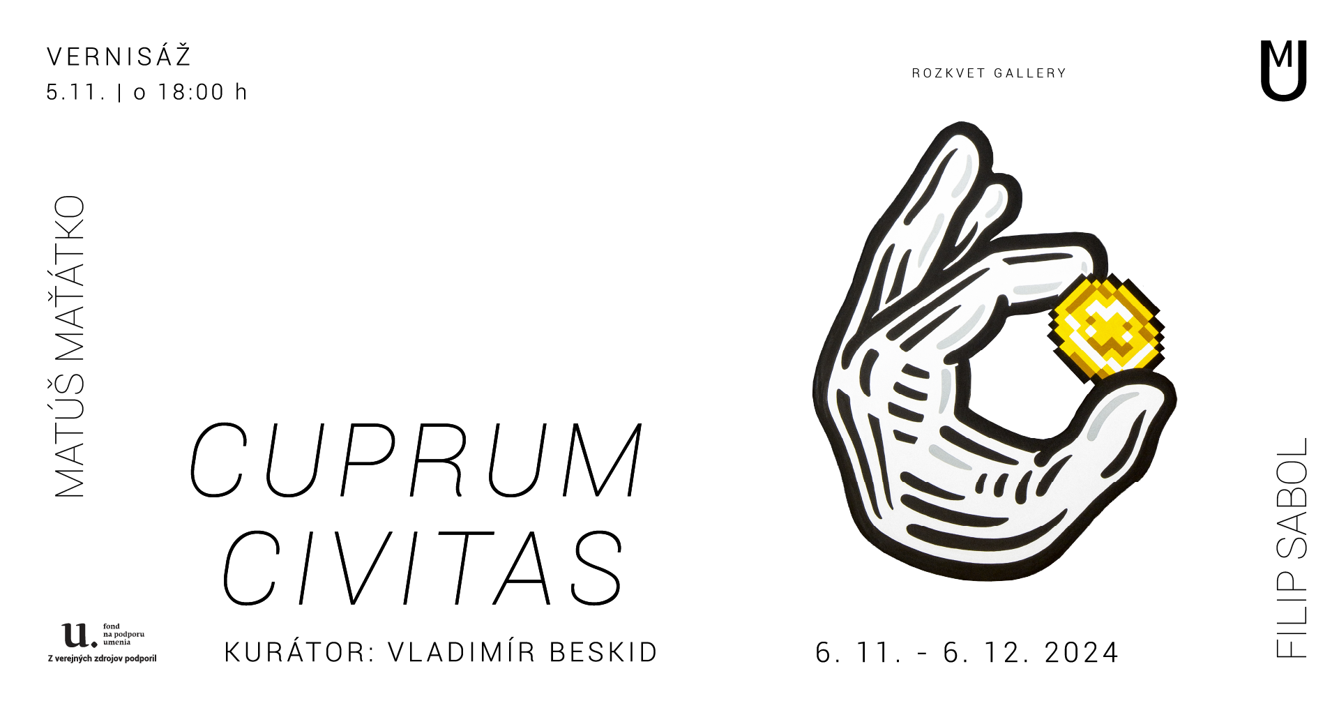 Pozývame Vás na vernisáž výstavy CUPRUM CIVITAS 5.11. 2024 | utorok | 18:00 hod. autori: Matúš Maťátko, Filip Sabol kurátor: Vladimír Beskid Rozkvet Gallery, Horná 36, Banská Bystrica, 1. poschodie, vpravo