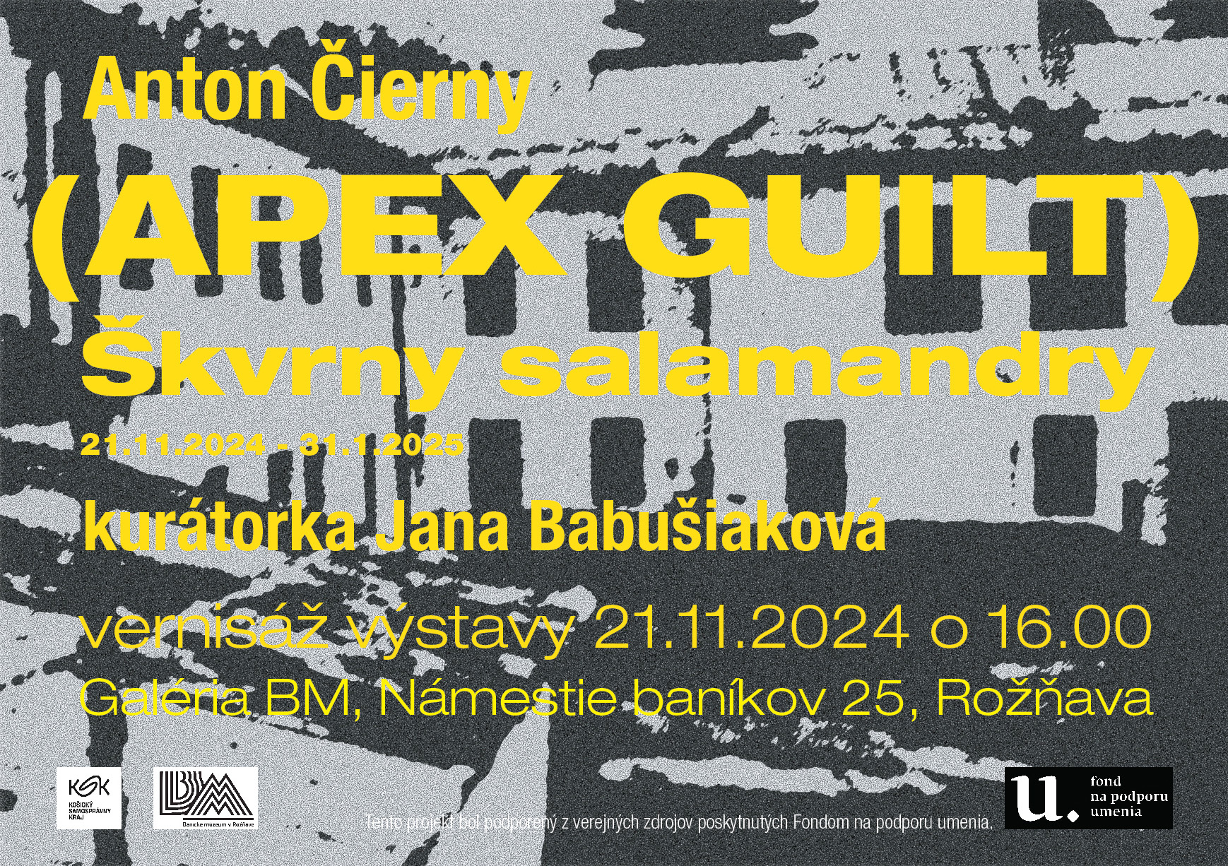 Intermediálny umelec Anton Čierny na výstave Apex Guilt - Škvrny Salamandry v banskom múzeu v Rožňave predstavuje videoinštaláciu, ktorá sa v troch dejstvách a scénograficky cizelovanej symbolike podobá na fiktívny príbeh či bájku, ktorá však má základ v tristnej realite slovenského reedukačného systému mládeže.