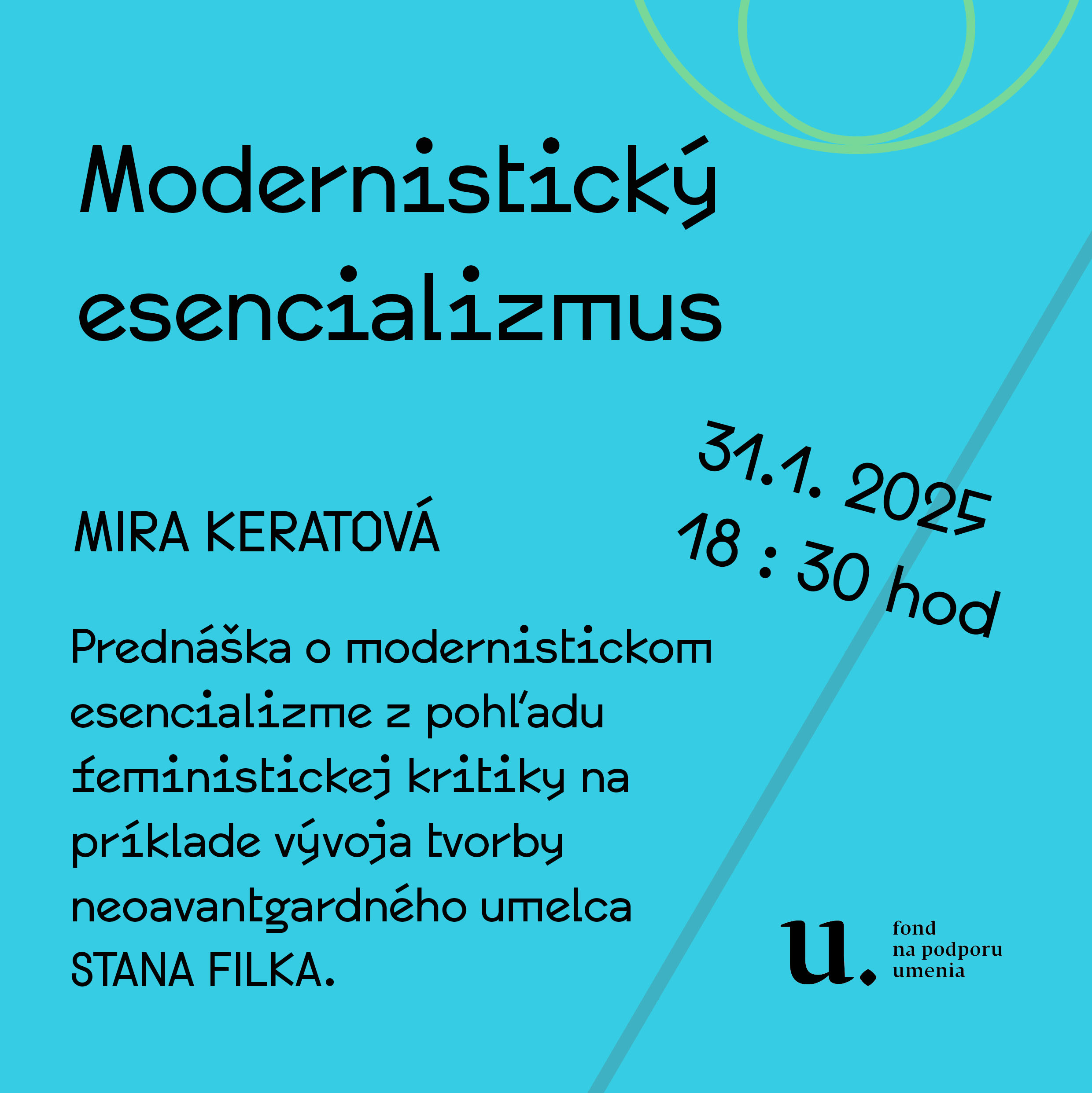 Prednáška Miry Keratovej o modernistickom esencializme z pohľadu feministickej kritiky na príklade vývoja tvorby neoavantgardného umelca STANA FILKA.