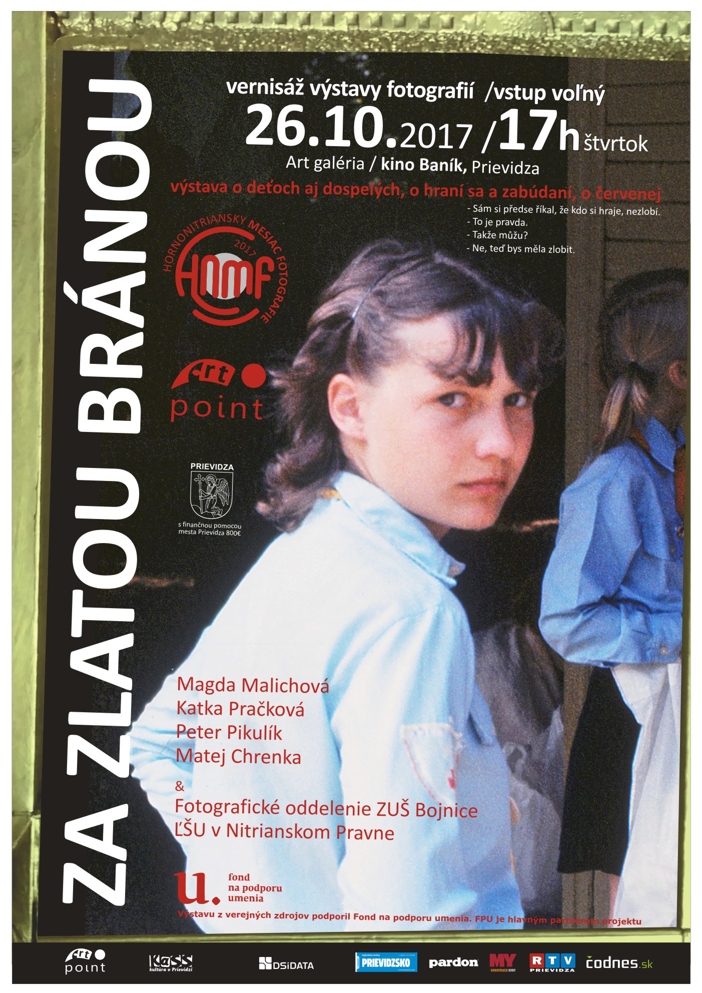 Výstava "Za zlatou bránou" je to prvá zo série výstav pod názvom Hornonitriansky mesiac fotografie ktoré budú prebiehať na viacerých miestach v okrese Prievidza