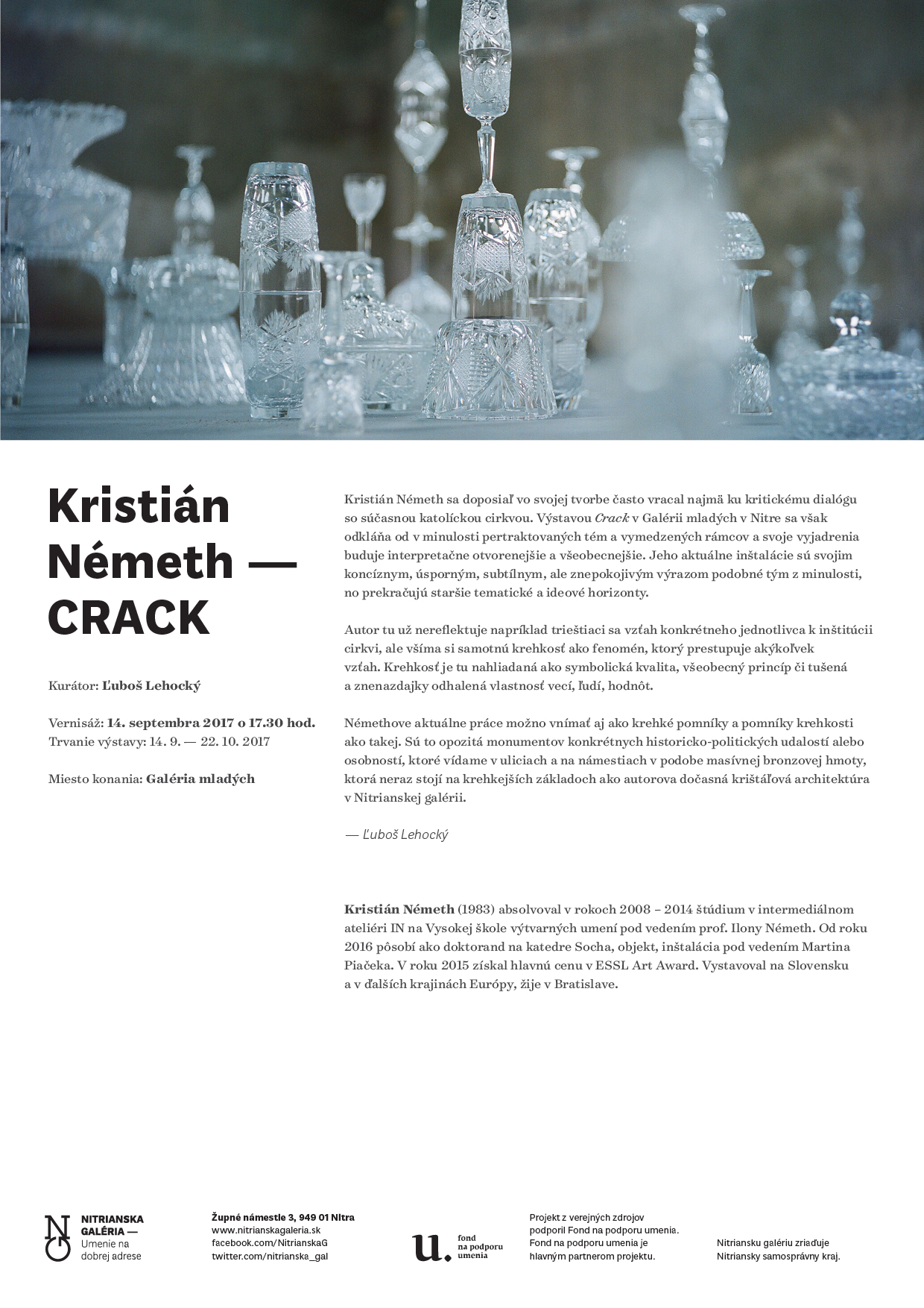 Ústrednou témou výstavy pre Nitriansku galériu je krehkosť. Autor tu pracuje s krištáľom, ktorý je známy pre svoju krehkosť. Ukladaním krištáľových predmetom na seba je pocit krehkosti znásobovaný. Jednotlivé krištáľové predmety nie sú k sebe prilepené a môžu sa rozbiť už len otrasmi, ktoré spôsobujú okoloidúci návštevníci.