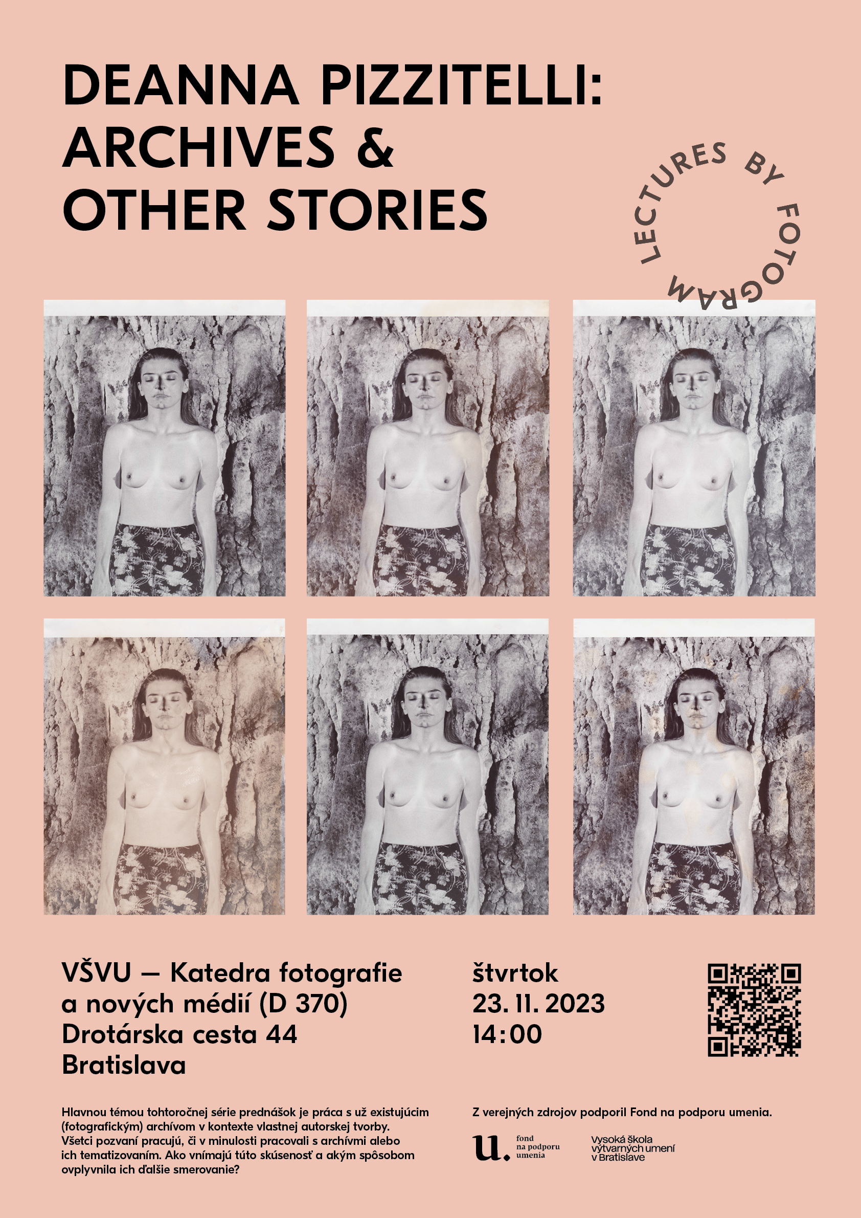 Hlavnou témou tohtoročnej série prednášok Lectures by Fotogram II je práca s už existujúcim (fotografickým) archívom v kontexte vlastnej autorskej tvorby. Všetci pozvaní pracujú či v minulosti pracovali s archívmi alebo ich tematizovaním. Ako vnímajú túto skúsenosť a akým spôsobom ovplyvnila ich ďalšie smerovanie?