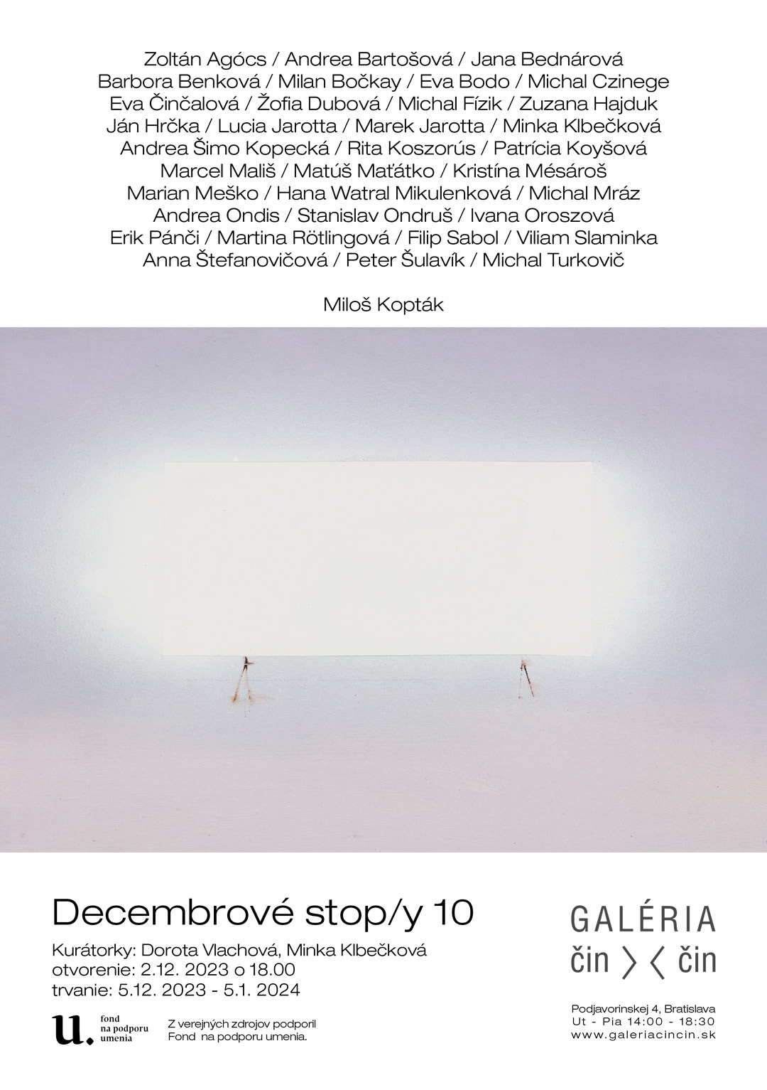 36 autorov na koncoročnom zimnom salóne pod názvom Decembrové stop/y 10. Na výstave sme predstavili 62 rôznych malieb na tému Biela.
