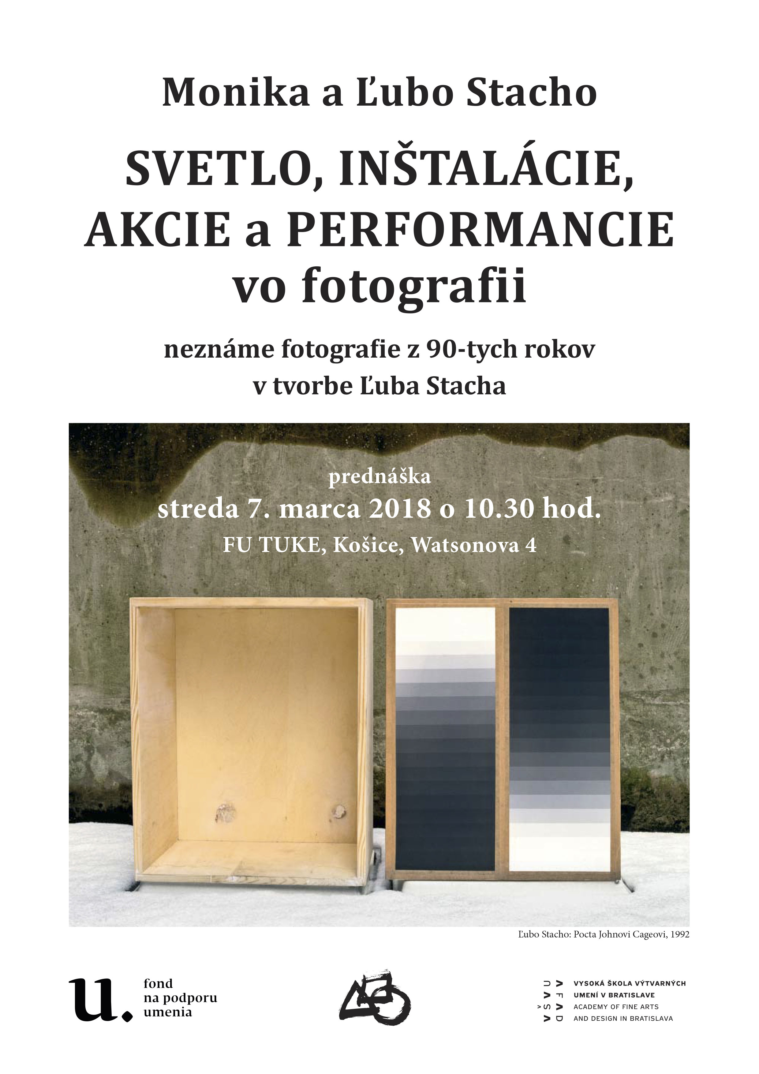 Prednáška pod názvom: Monika a Ľubo Stacho - SVETLO, INŠTALÁCIE, AKCIE a PERFORMANCIE vo fotografii s podtitulom: neznáme fotografie z 90-tych rokov v tvorbe Ľuba Stacha.