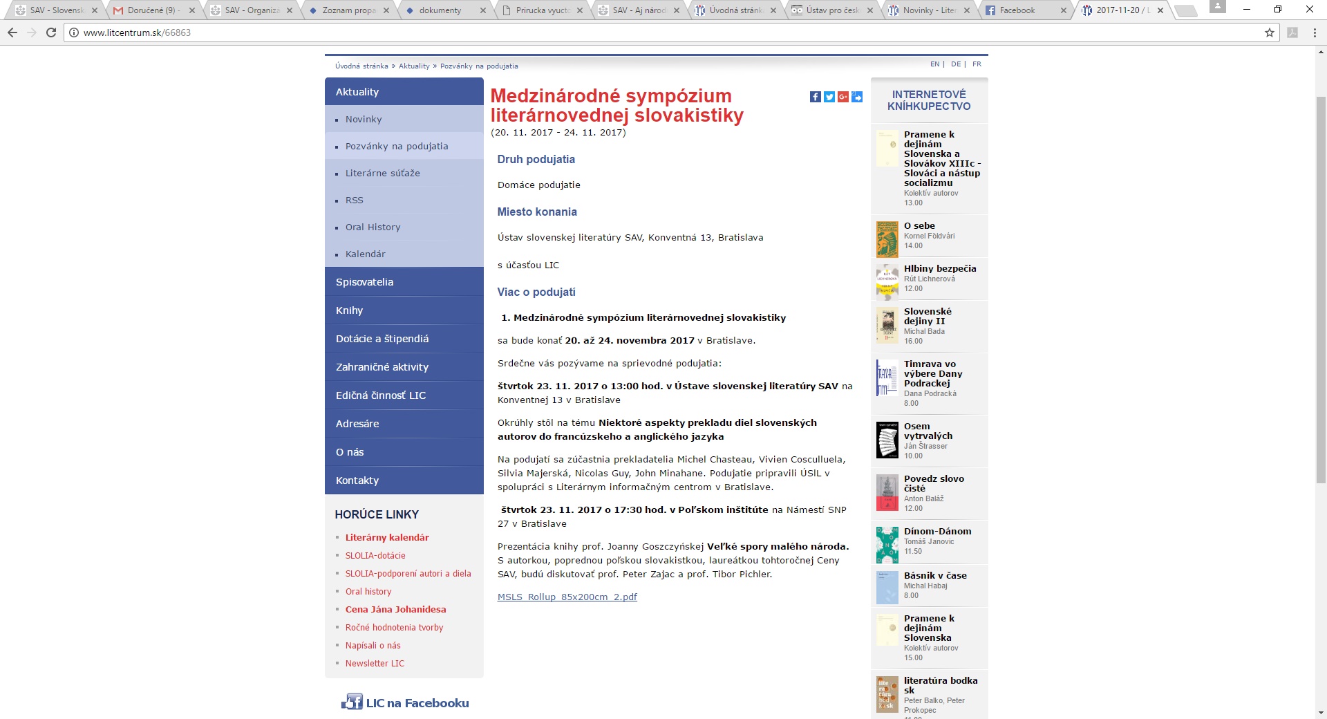 Článok o programe 1. MSLS na webe Literárneho informačného centra v Bratislave