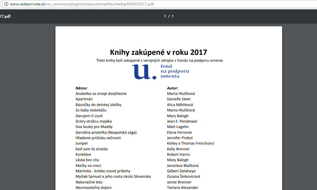 Fond na podporu umenia nenesie žiadnu zodpovednosť za úplnosť, správnosť a pravdivosť, ako ani za legalitu údajov uvedených v tejto časti webového portálu FPU. Všetky zverejnené informácie, v textovej, hypertextovej alebo obrazovej forme sú výlučnou zodpovednosťou prijímateľa finančných prostriedkov poskytnutých Fondom na podporu umenia, ktorý preberá zodpovednosť za zverejnené informácie súhlasom s podmienkami FPU a samotným zverejnením informácií na webovom portáli FPU.
