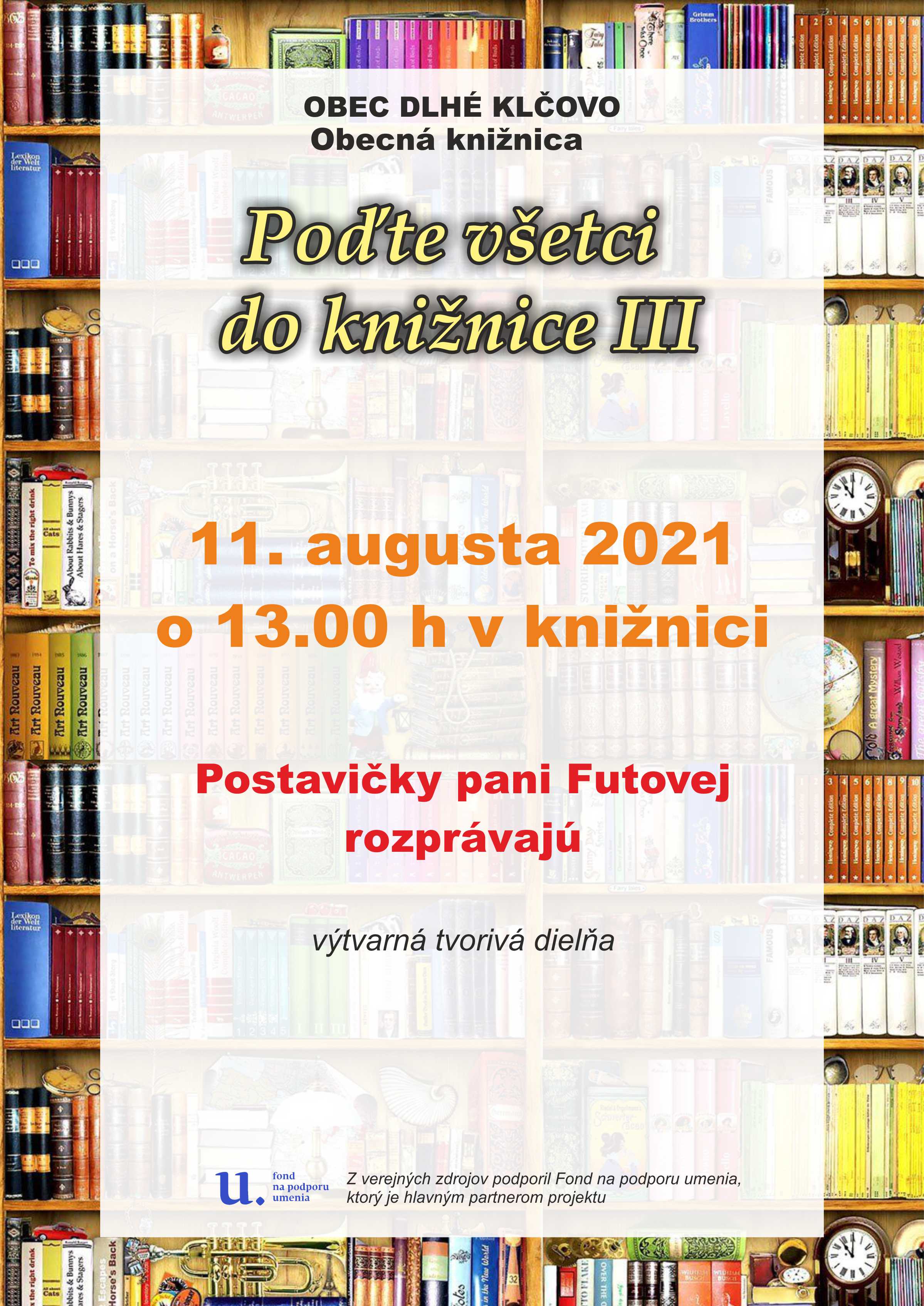 "Postavičky pani Futovej rozprávajú" pod týmto názvom sa uskutoční výtvarná tvorivá dielňa. Nadviažeme na besedu so spisovateľkou Gabrielou Futovou a vytvoríme z papiera postavičky, ktoré naše deti oslovili z tvorby autorky, z prečítanej knihy. V závere si prečítame úryvok z knihy "Nejdem a basta" a postavičky prehovoria.