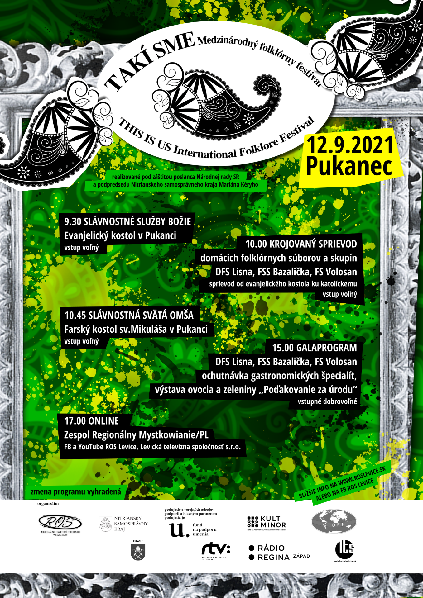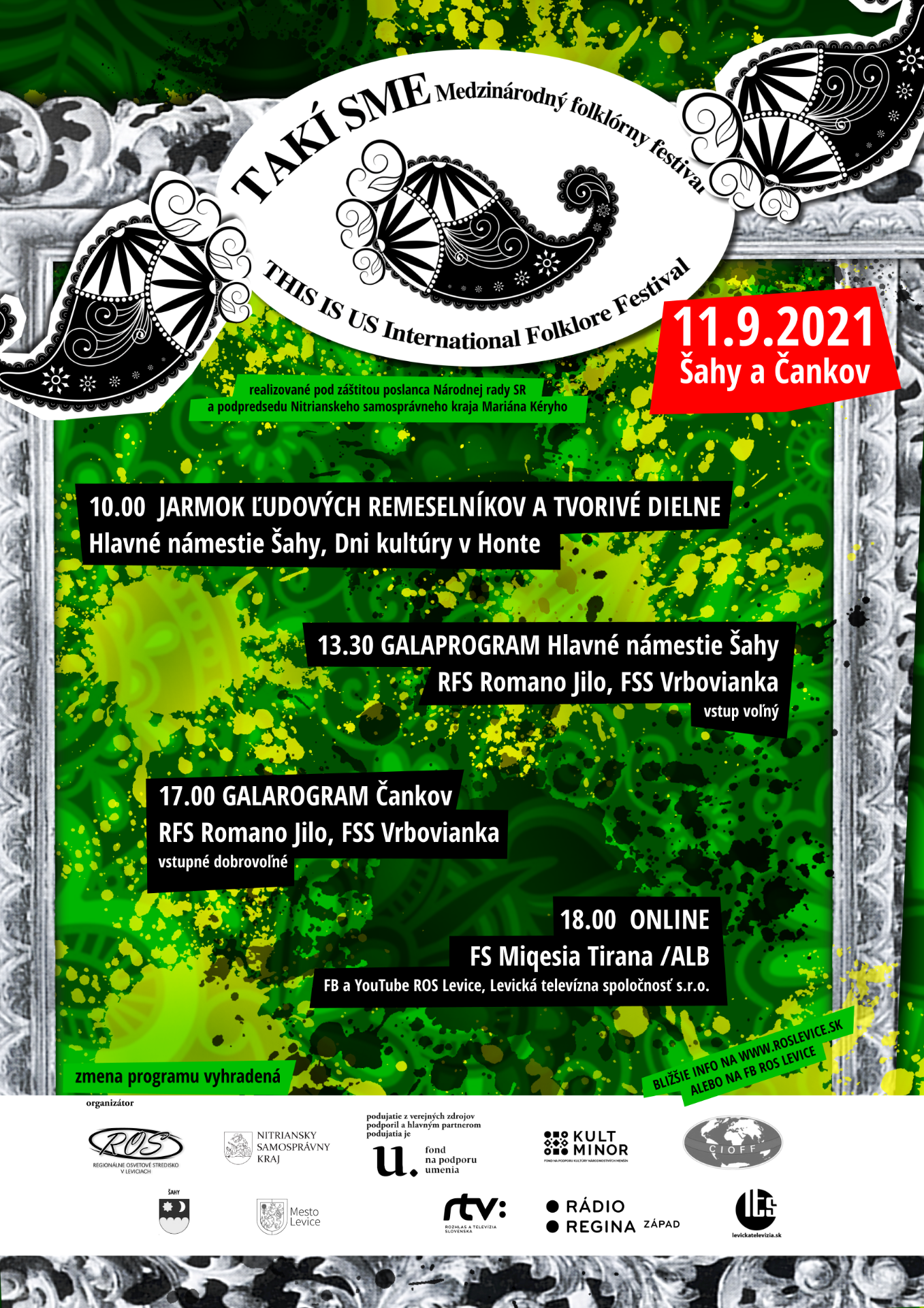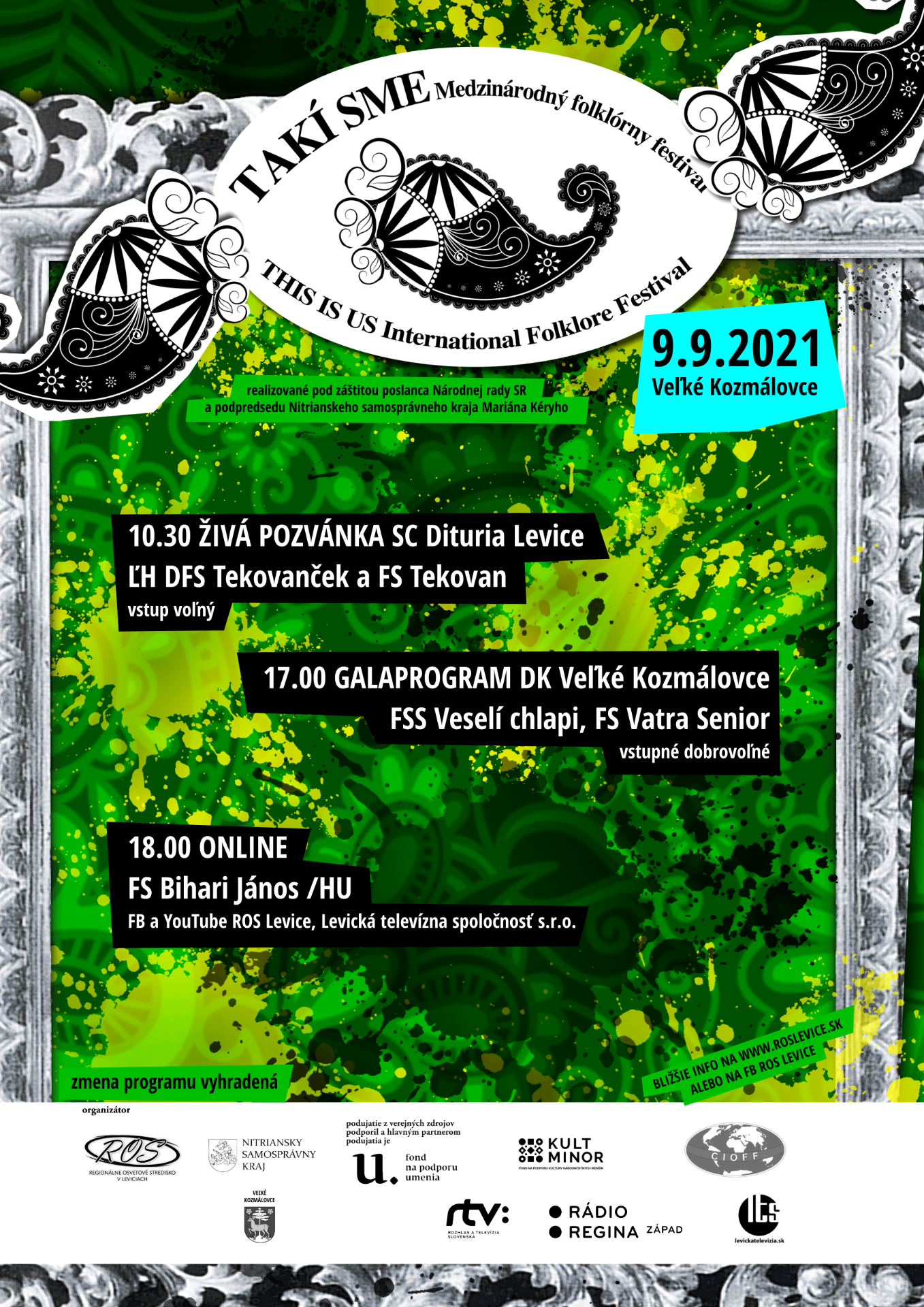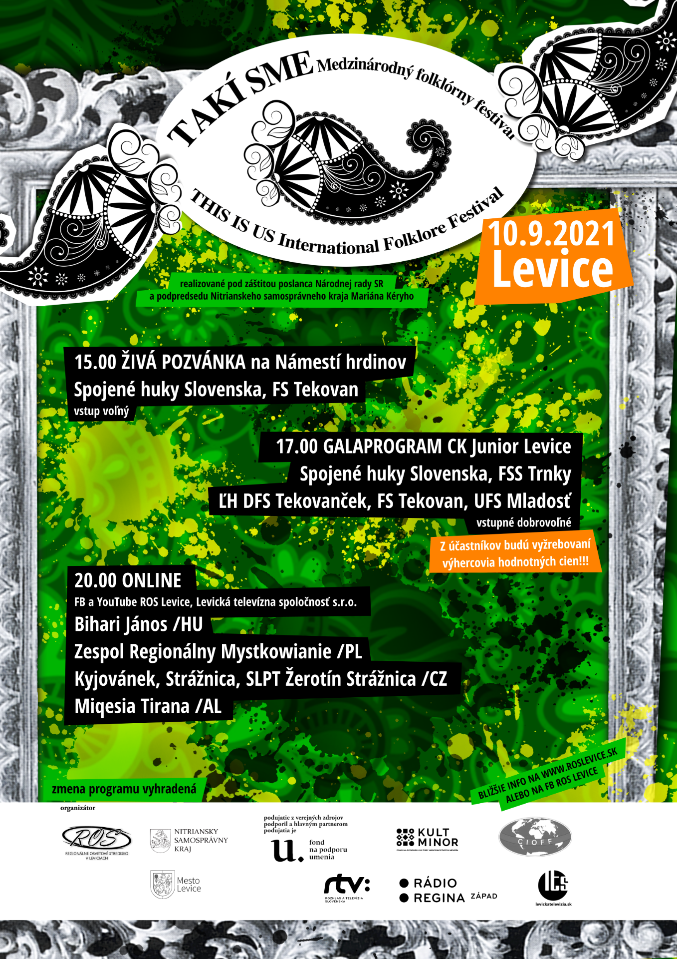 Počas piatich dní prebehne šesť galaprogramov, dva výchovné koncerty, jeden krojovaný sprievod, prehliadka gastronomických špecialít, tradičný jarmok ľudových remeselníkov spojený s tvorivými dielňami, slávnostná svätá omša, dve živé pozvánky. Zabezpečíme kvalitnú prezentáciu zahraničných účastníkov formou galaprogramov -odvysielané budú podľa harmonogramu v Levickej televízií, na YouTube a FB ROS.