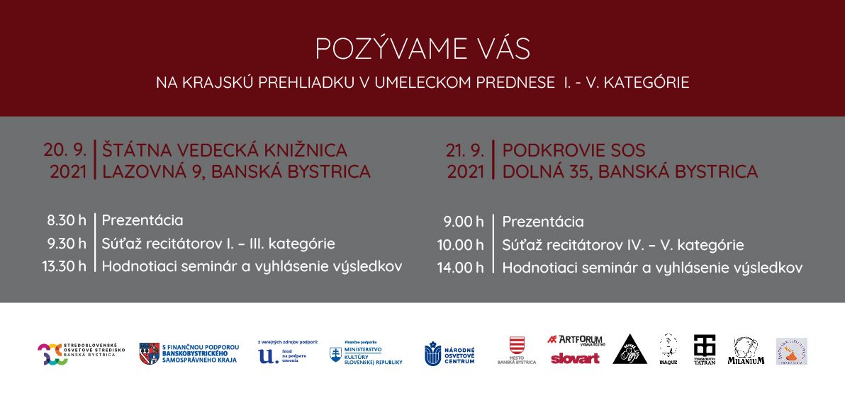 62. SLÁDKOVIČOVA RADVAŇ - Krajská súťažná prehliadka v umeleckom prednese I. - V. kategórie a tvorby recitačných kolektívov a divadiel poézie