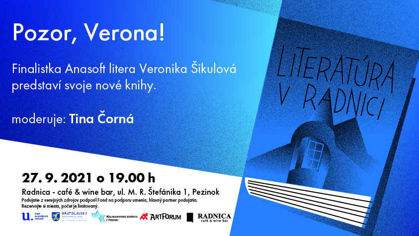 Tentokrát sa na stoličku hosťa posadí Veronika Šikulová, finalistka Anasoft litera. Spovedať ju bude Tina Čorná. Ste srdečne vítaní.