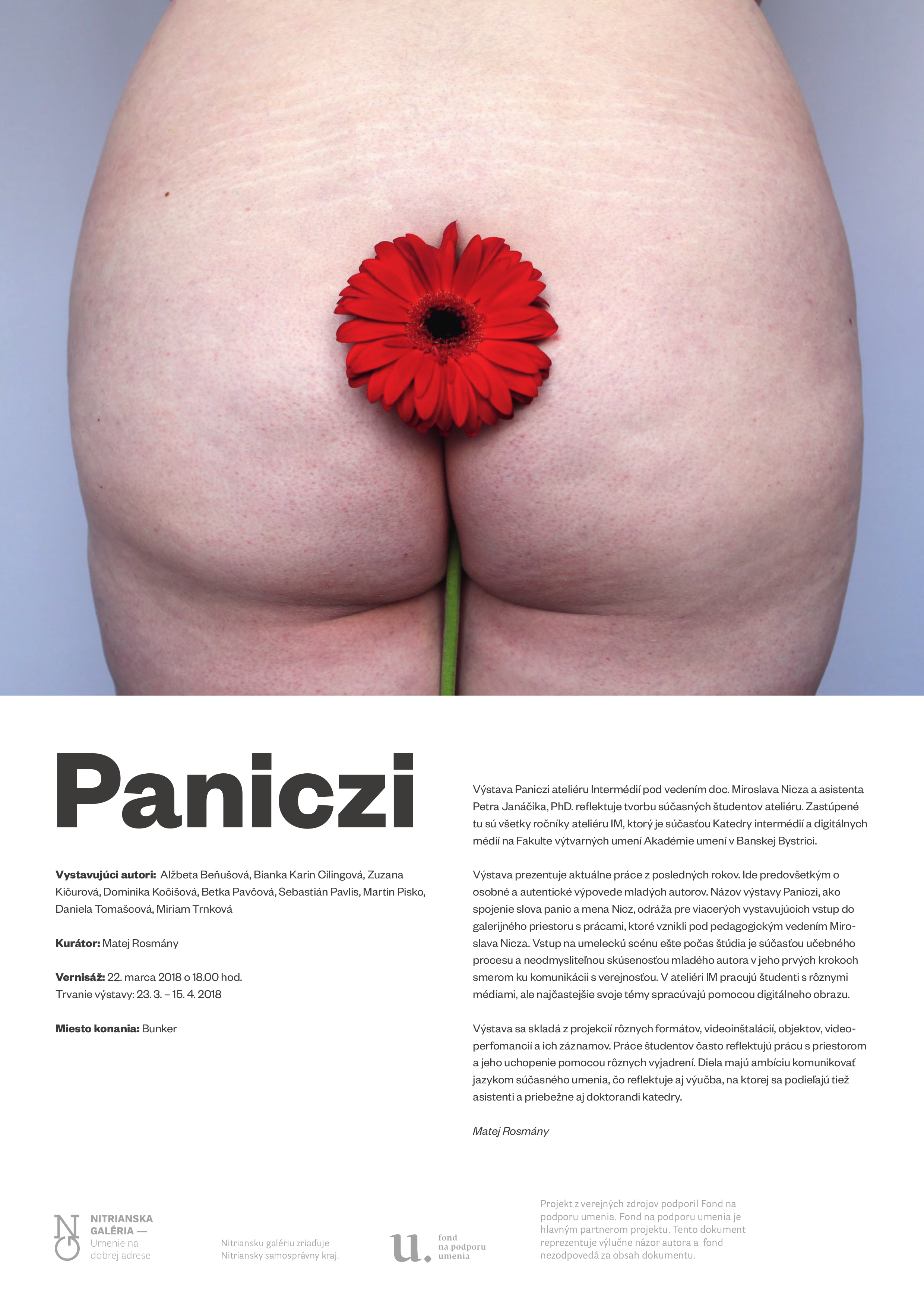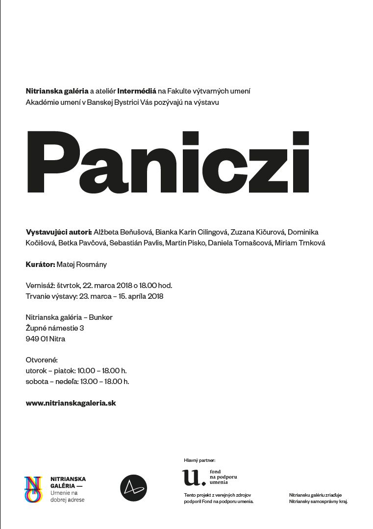 Výstava Paniczi ateliéru Intermédií pod vedením doc. Miroslava Nicza a asistenta Petra Janáčika, PhD. reflektuje tvorbu súčasných študentov ateliéru. Zastúpené tu sú všetky ročníky ateliéru IM, ktorý je súčasťou Katedry intermédií a digitálnych médií na Fakulte výtvarných umení Akadémie umení v Banskej Bystrici.