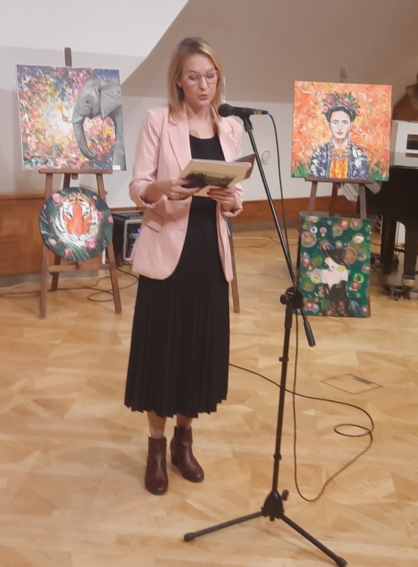 Katarína Mosnáková Bagľašová prečítala básne z najnovšieho rukopisu Cez kľúčové ucho, ktorého tvorba bola podporená formou štipendia z verejných zdrojov Fondu na podporu umenia.