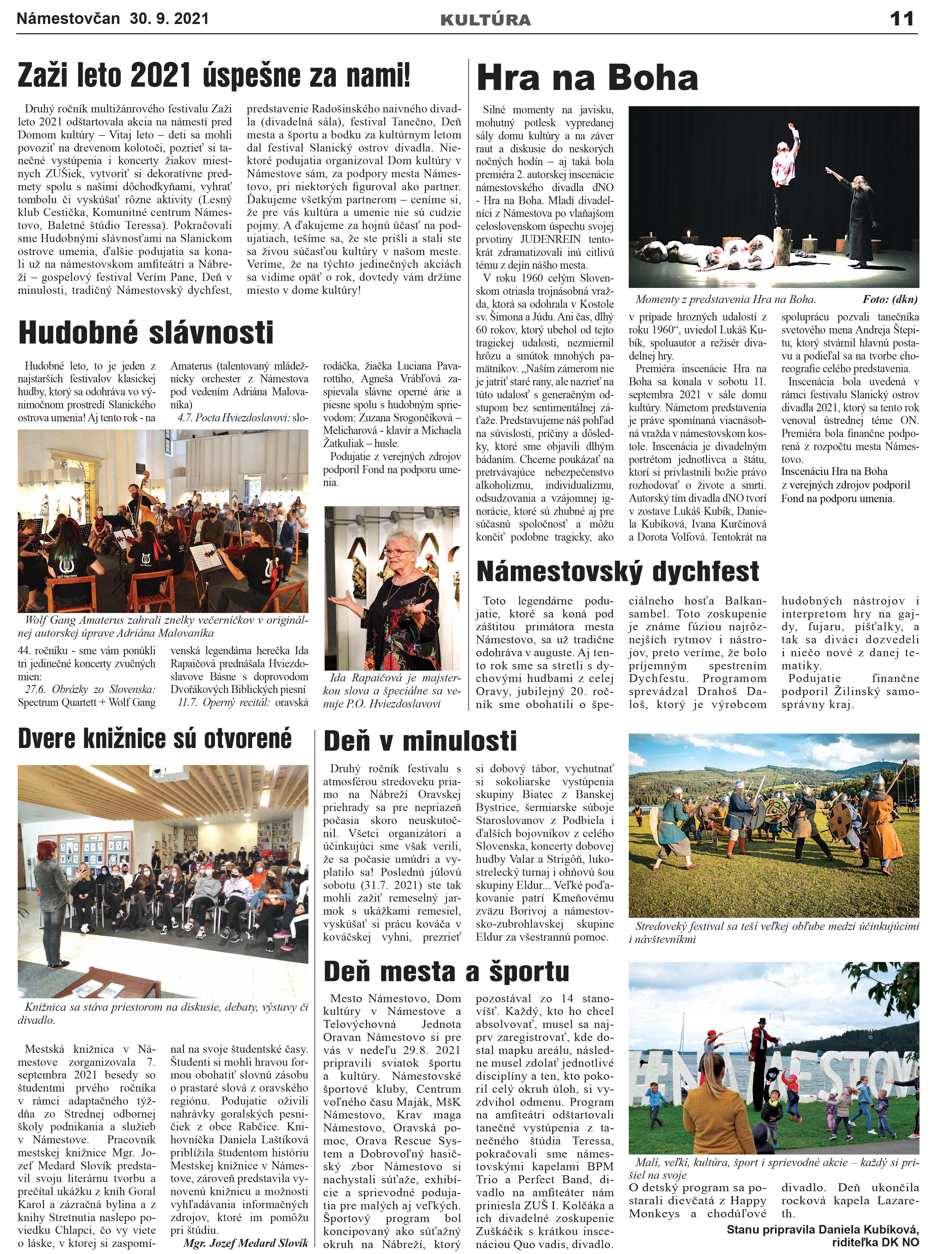 sa konala v sobotu 11. septembra 2021 v sále Domu Kultúry. Inscenácia bola uvedená v rámci festivalu