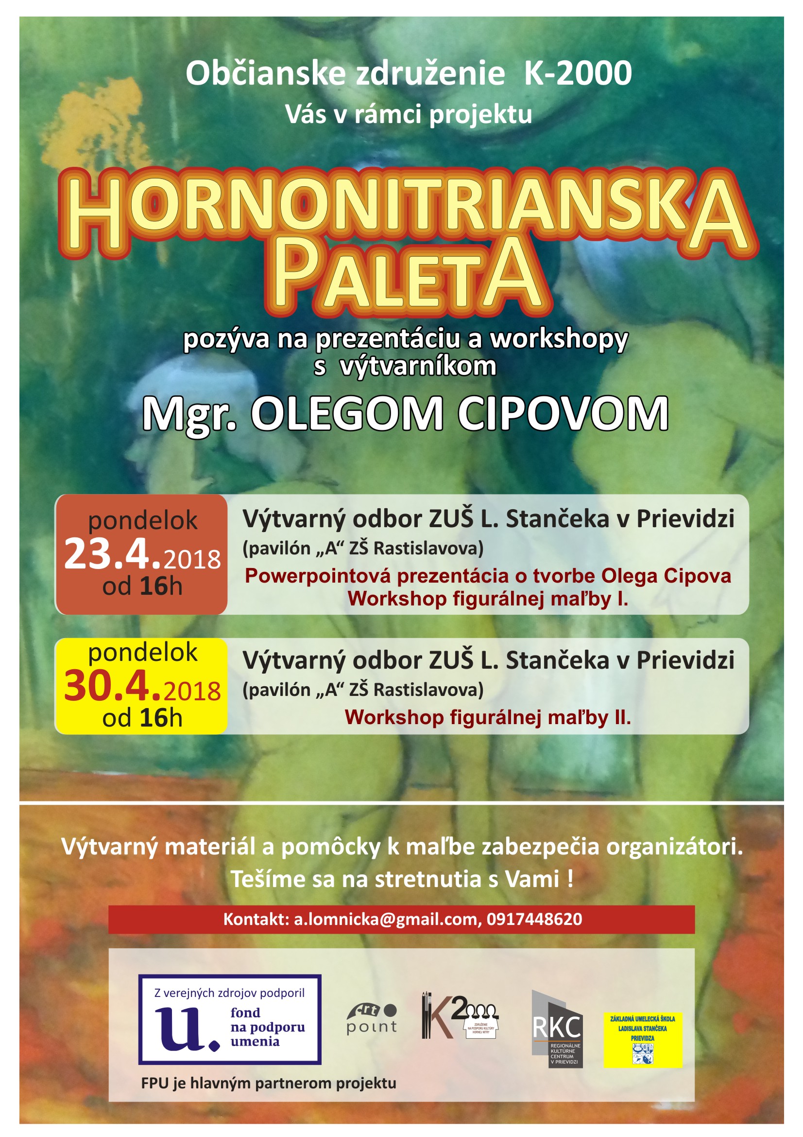 V rámci vzdelávacieho cyklu sa uskutočnilii dva workshopy s výtvarníkom Petrom Hitzingerom zamerané na maľbu v priestoroch Art point kina Baník v Prievidzi. Cyklus pokračuje workshopmi dalšieho výtvarníka - Mgr. Olega Cipova v termínoch 23. a 30. apríla v priestoroch výtvarného odboru ZUŠ L. Stančeka v Prievidzi.