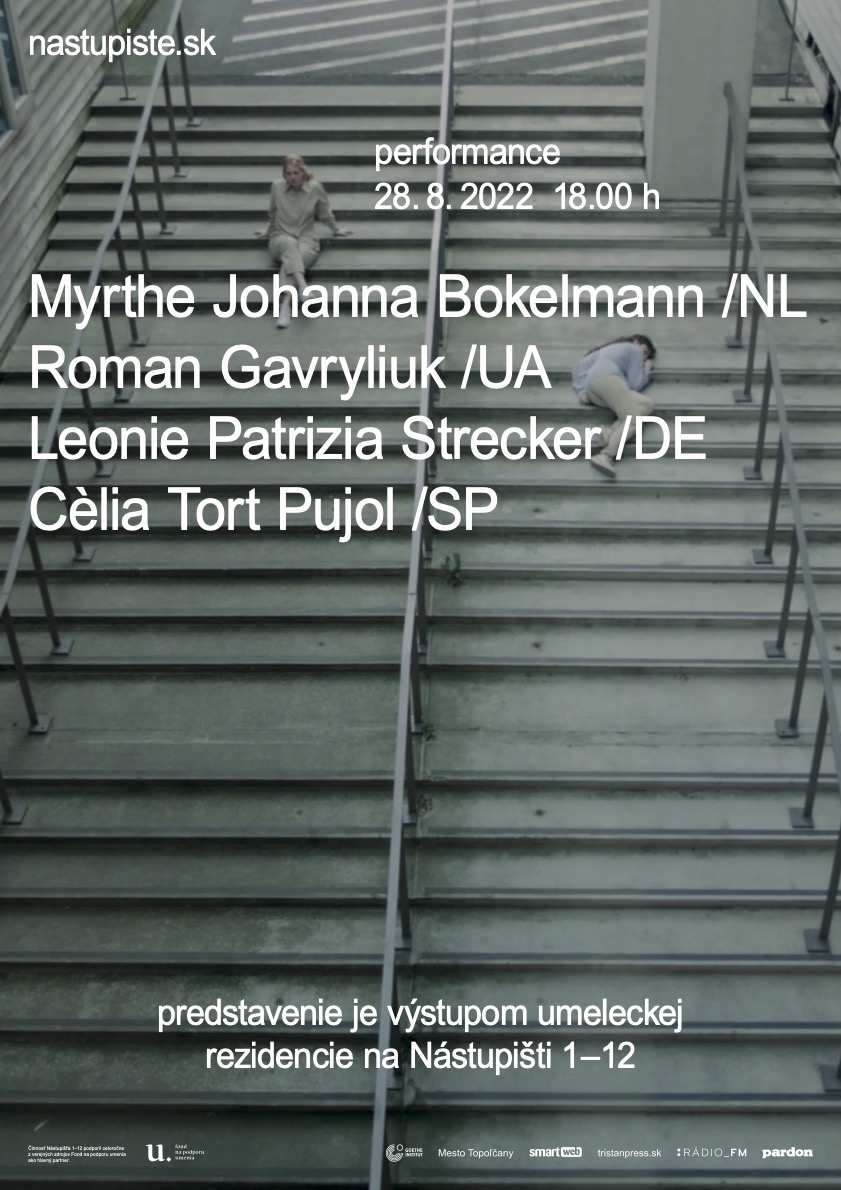 Myrthe Bokelmann,holandská umelkyňa absolventka magisterského štúdia súčasného tanca v Artesis Antwerp, Belgicku, tvorí performatívne predstavenia a site specific diel.