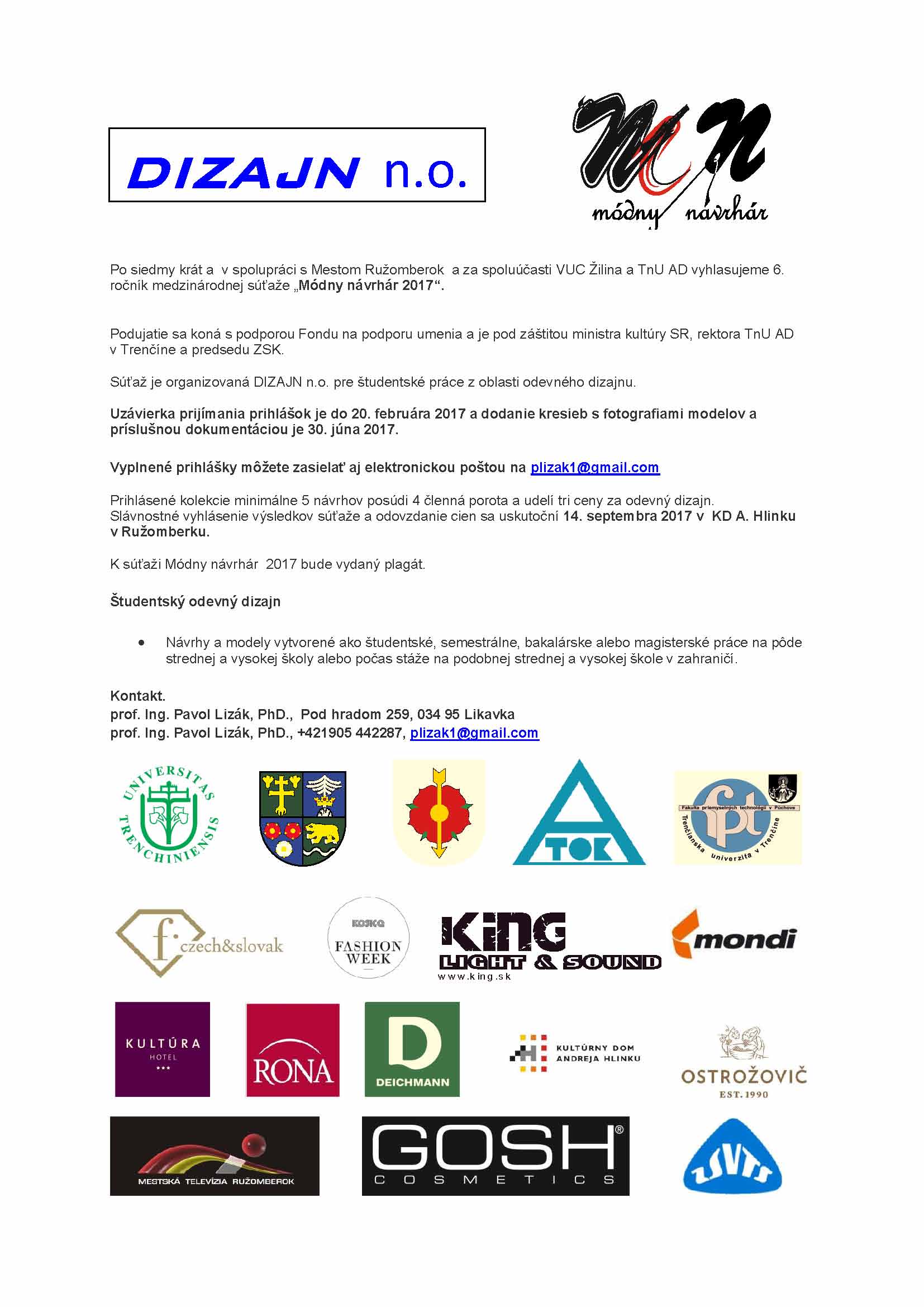 autorskej tvorby mladých návrhárov bude KD A. Hlinku v Ružomberku, kde bude pravdepodobne konferovať moderátorka