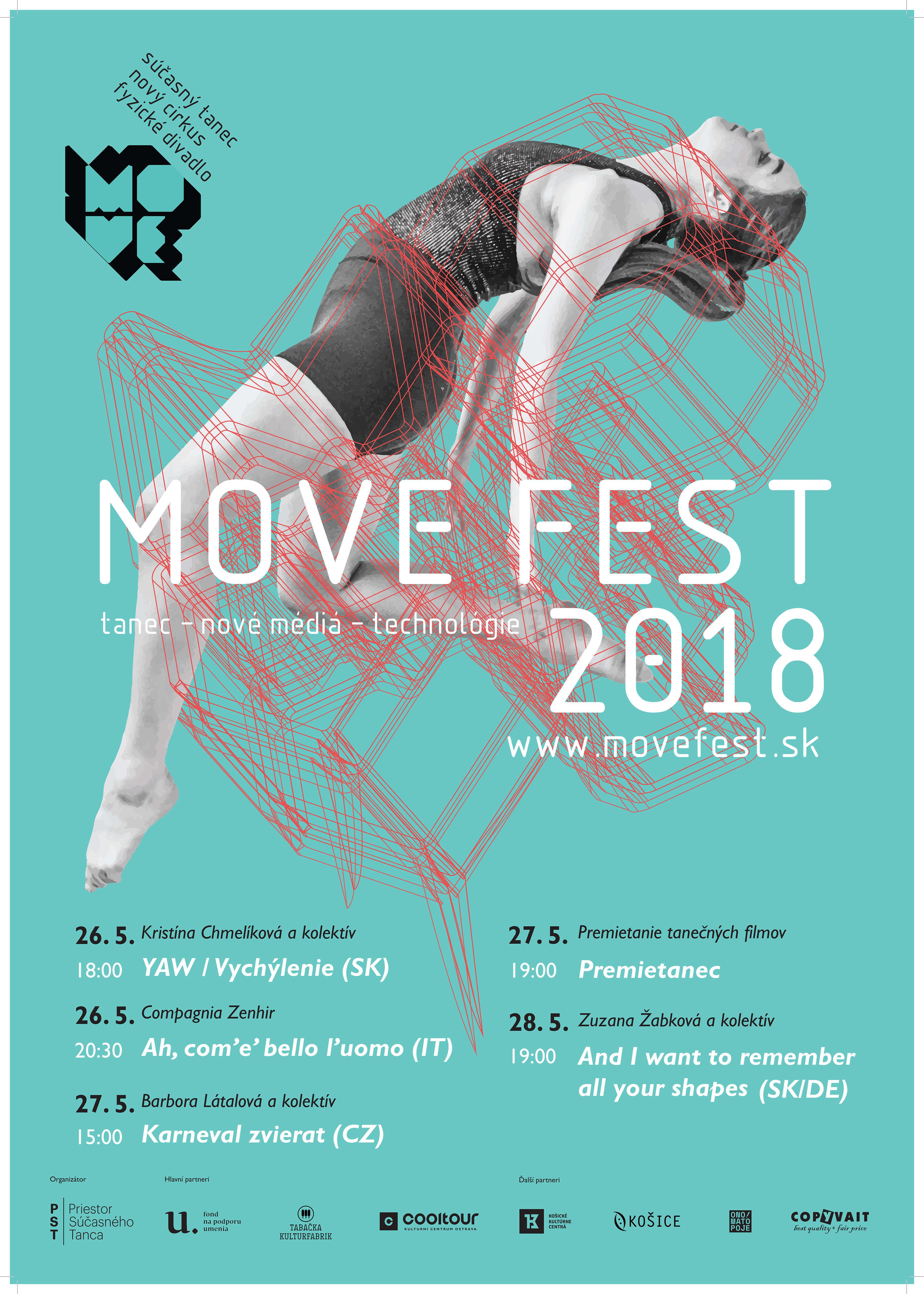 Move Fest, festival súčasného tanca, nového cirkusu a fyzického divadla, prichádza po 5-tich úspešných ročníkoch z Ostravy aj do Košíc. Z nezávislého kultúrneho centra Cooltour Ostrava (CZ) ho do Tabačky Kulturfabrik, Košice (SK) prináša PST-Priestor Súčasného Tanca.
