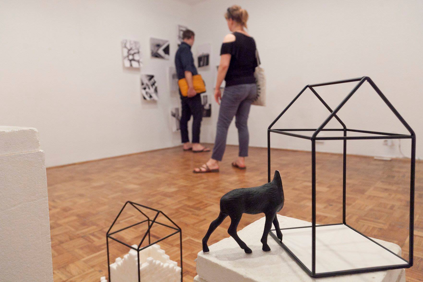 Metalne konstrukcije Mirijam Šebjanove pod nazivom Slatki dom oblikovane su kao arhetipske kuće. U njihovoj trećoj dimenziji otvara se određen fizički i ideološki prostor, na sličan način na koji se to dešava i u čvrstim ali fluidnim linijama Marijinih crteža. Granice ovog prostora su prekinute motivima iz Marijinog uobičajenog repertoara, kao npr. balonom ili figurom životinje, koji traže svoje mesto u okviru nejasnih granica između privatnog i javnog prostora. Umetnice nam sugerišu da obratimo pažnju na vezu između njihovog rada, na slatke uspone i padove, na fragilnost sličnu zidovima od šećera jedne od ovih malih konstrukcija kuća.