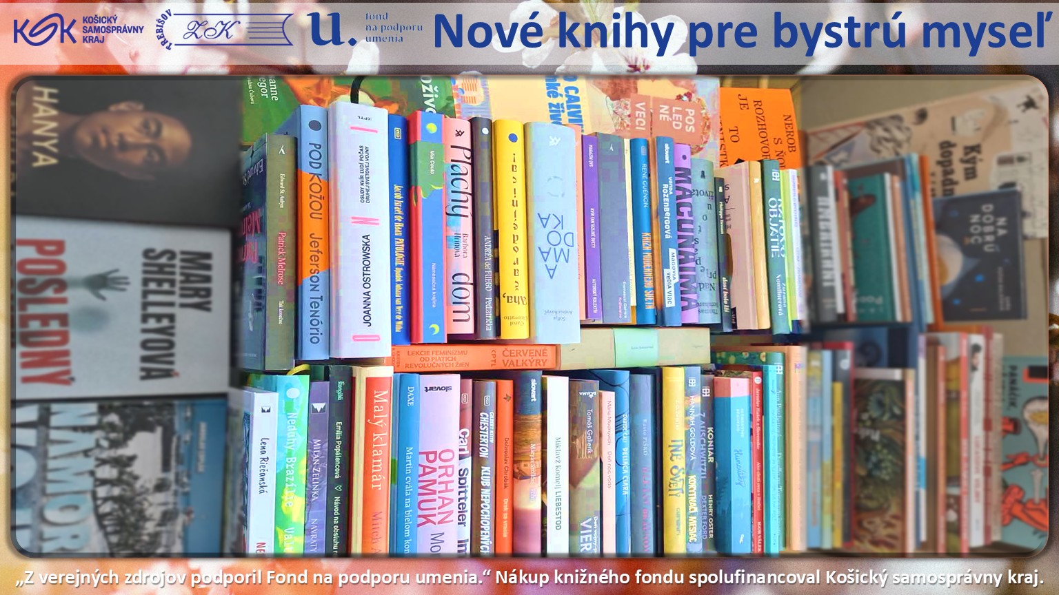 Hlavným cieľom nákupu nových knižničných jednotiek je pravidelná a systematická obnova knižničného fondu, ktorá reflektuje aktuálne potreby a záujmy našich čitateľov. Vďaka finančnej podpore z Fondu na podporu umenia môžeme do knižnice zakúpiť literatúru, ktorá pokrýva široké spektrum žánrov – od pôvodnej slovenskej tvorby a kvalitných prekladov svetovej beletrie až po odborné publikácie a populárno-náučnú literatúru pre všetky vekové kategórie používateľov.