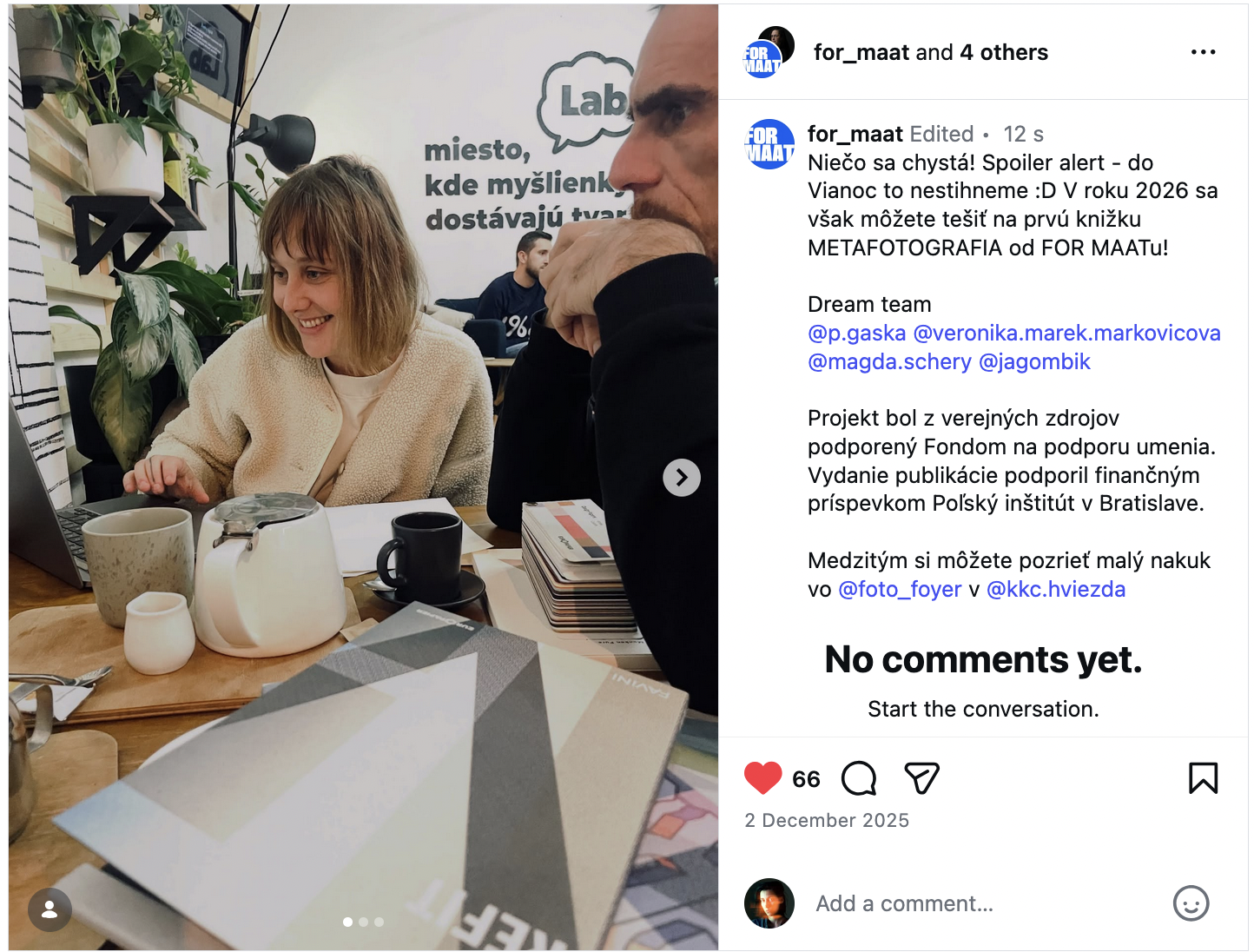 Propagácia projektu prebiehala na niekoľkých kanáloch, kde bola uvedená informácia o podpore projektu Fondom na podporu umenia.
