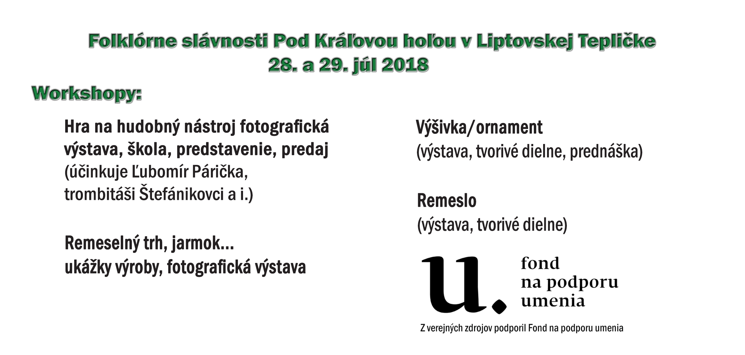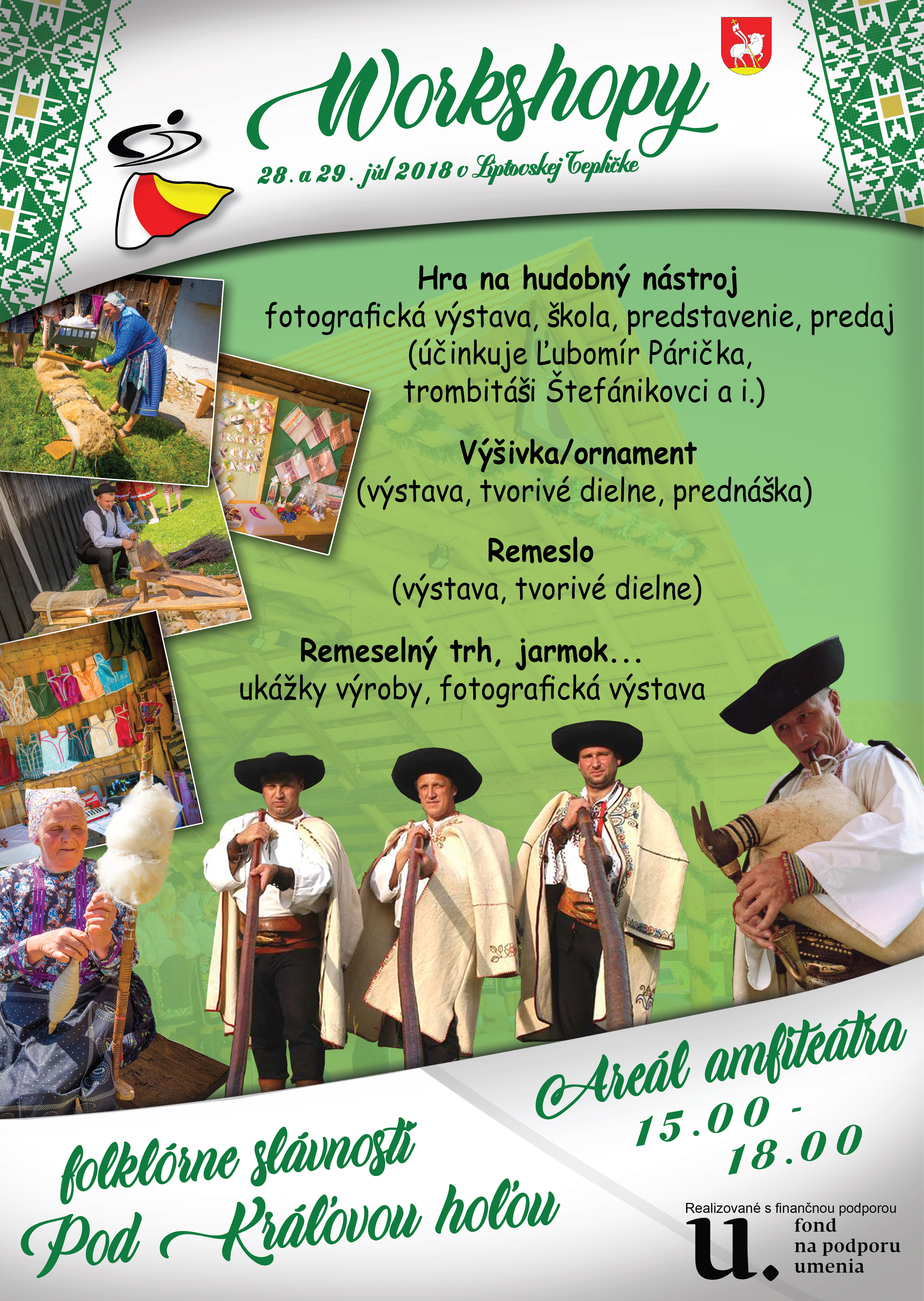 Počas podujatia môžete zhliadnuť i vyskúšať si, dozvedieť sa informácie hlavne o hudobných nástrojoch zapísaných do nehmotného kultúrneho dedičstva - gajdách, fujare, trombitách a ďalších zaujímavých nástrojoch. Účinkujú Trombitáši Štefánikovci, Ľubomír Párička a ďalší. Zároveň je k tejto téme pripravená fotografická výstava Vladimíra Lindera.