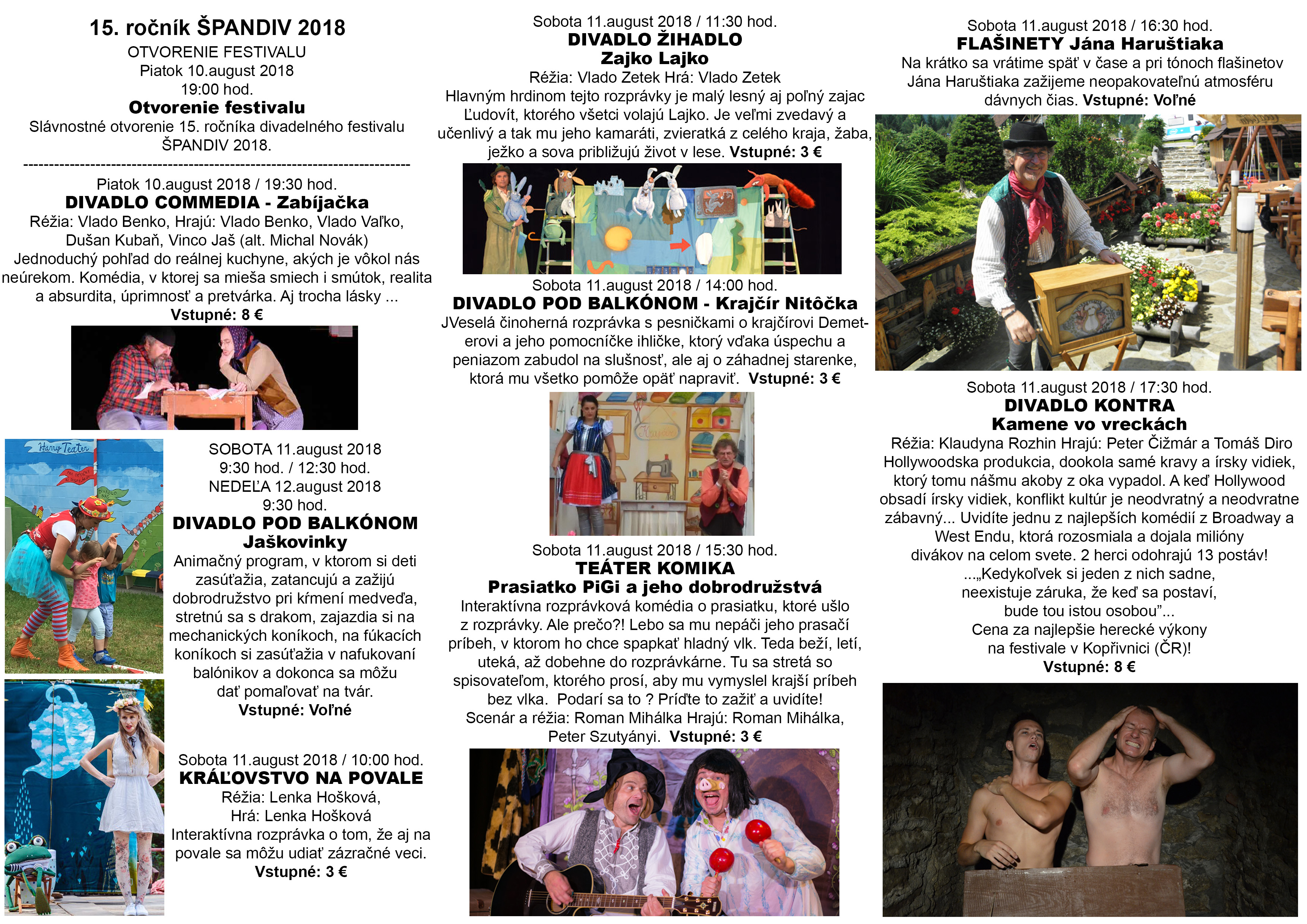 Divadelný festival s 15. ročnou tradíciou, v ktorom uvidíte okrem divadiel a animačných programov pre deti aj divadlo pre dospelých, operu, balet i mágiu a to všetko v magickom prostredí Španej Doliny.