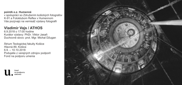 Pre pravoslávnych kresťanov má Athos jedinečný význam ako jedno z pomyselných duchovných centier. Na Svätej Hore je cez tisícročie nepretržite pestovaná duchovná tradícia najhlbšej mystickej duchovnej modlitebnej praxe. Athos, nezávislá mníšska republika vo východnej časti gréckeho polostrova Chalkidiki, je aj miestom podivuhodnej starobylej byzantskej architektúry, kde sa zachovalo veľké množstvo archeologických pamiatok z dávnej Byzancie. Právom ho možno považovať za duchovno-kultúrny klenot sveta, pretože v starobylých monastieroch (kláštoroch) a pustovniach sa uchovávajú pamiatky nevyčísliteľnej hodnoty. Ide o práce ikonopiscov, rezbárov, kaligrafov a ďalších umelcov. Civilizácia prirodzene zasiahla aj do tohto priestoru, o ktorom sa v našej uponáhľanej dobe pomerne málo píše a hovorí. Predkladaný reportážny súbor čiernobielych fotografií Vladimíra Vajsa zobrazuje typické prvky kláštornej architektúry. Atmosféru života v tomto „zabudnutom svete“ dotvárajú pohľady na ikony, staré knihy, sochy ukrižovaného Krista, svietniky, drevené kríže ukryté v kamenných nikách alebo pripevnené na vchodových dverách. Pri fotografiách zobrazujúcich mníchov sa začínajú odvíjať jednotlivé príbehy plné múdrosti, životných skúseností, ale aj inotajov, ktoré patria k tajomstvám ich zasväteného života. Pre autora to znamenalo dotknúť sa sveta, kde čas plynie iným, pokojným tempom a kde je ideálny priestor na zamyslenie sa nad životnými hodnotami tohto sveta. Ak umenie má silu, ktorá môže zmeniť myslenie človeka, potom súbor fotografií od Vladimíra Vajsa môže začať tento proces u mnohých návštevníkov jeho výstavy.