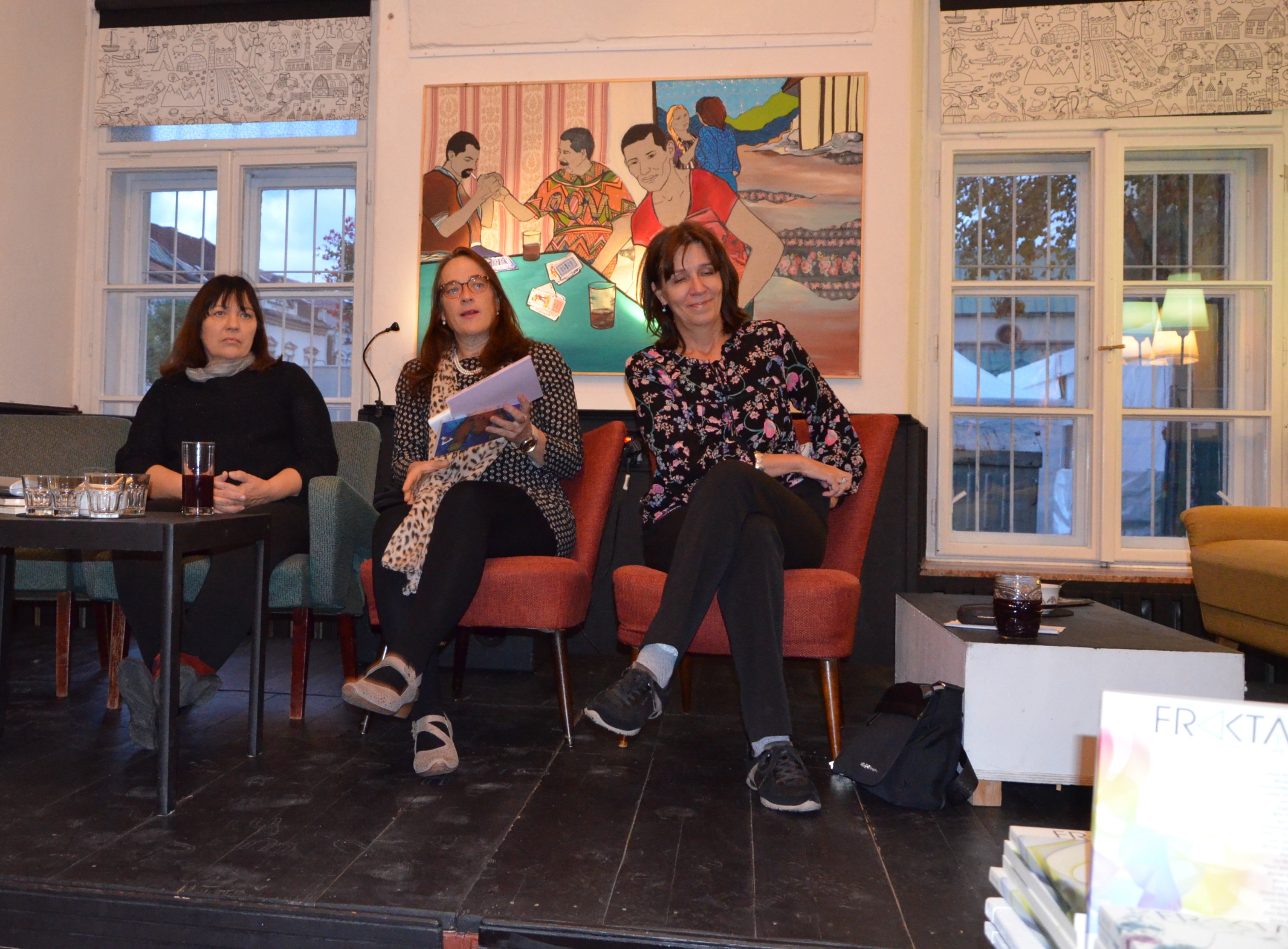 Mikulášsky večer sme si vymysleli ako diskusný. Každá "hosťka" sa predstavila iba jednou básňou na začiatku a jednou na konci podujatia, ostatný priestor vypĺňali otázky a odpovede moderovanej diskusie. Barbara Korun bola zhovorčivejšia, Maja Vidmar o niečo menej, no nedá sa povedať, že by reč stála... a keď sme si už mysleli, že áno, prišli otázky z publika. O čom? O balkánskej realite. Slovinské poetky ani okom nemrkli a zodpovedali, čo sa dalo. Ďakujeme.