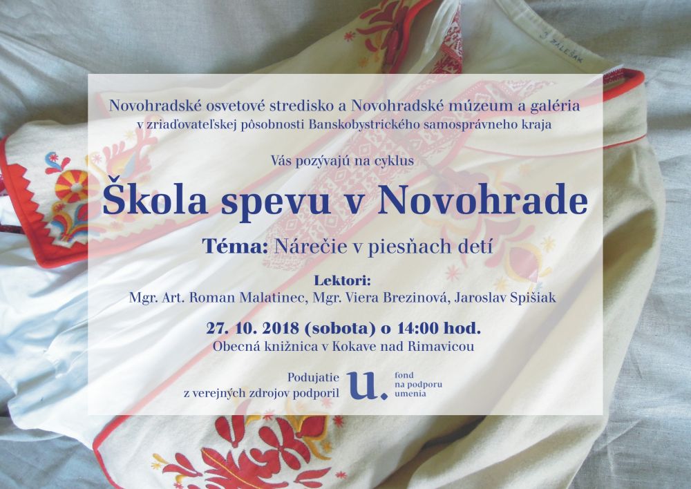 Cieľom projektu je realizovať školenie zamerané na hudobný folklór daného regiónu na interpretačné spevné prejavy v Novohrade. Na základe prístupných archívnych materiálov podľa, ktorých chceme oživiť piesňový hudobný materiál a napomôcť tak všetkým folklórnym kolektívom a jednotlivcom pôsobiacim v regióne. Ide o školenie, ktoré sa dotýka správnej interpretácie ľudovej piesne na scéne , technika spevu, možnosti hudobného sprievodu atď. Školenie je zamerané na ľudový spev a tradičné ľudové piesne z Novohradu. Zámerom je poskytnúť účastníkom – členom folklórnych súborov a skupín v regióne – možnosť na získavanie a osvojovanie si nových teoretických a praktických poznatkov týkajúcich sa hudobného regionálneho folklóru z regiónu Novohrad a Malohontu pod vedením skúsených lektorov.