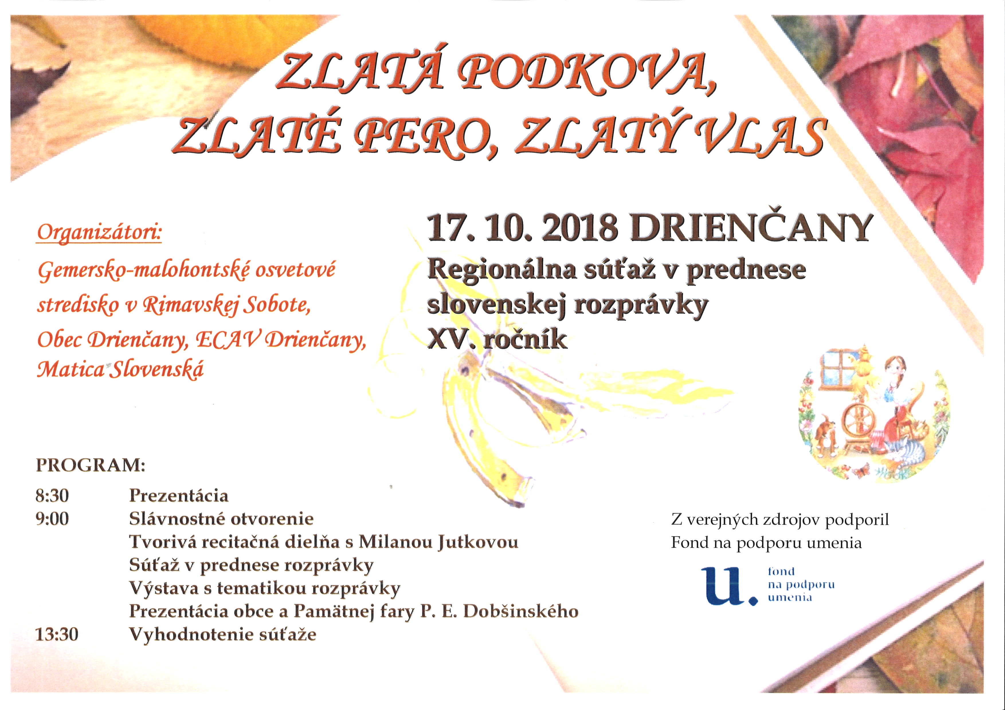 podkova, zlaté pero, zlatý vlas. Podujatie sa uskutoční 17. – 18. októbra