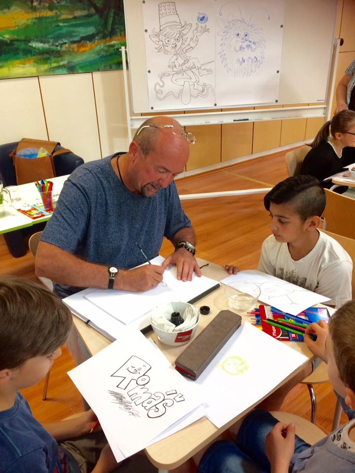 Stretnutie známeho ilustrátora Miroslava Regitka sa v knižnici uskutočnilo so žiakmi Základnej školy Bernolákova. Na tvorivej dielni pod vedením pána ilustrátora si všetci vyskúšali svoju zručnosť a fantáziu pri kreslení výjavov z rozprávok. Všetky deti dostali v závere podujatia krásnu ilustráciu od pána Regitka.
