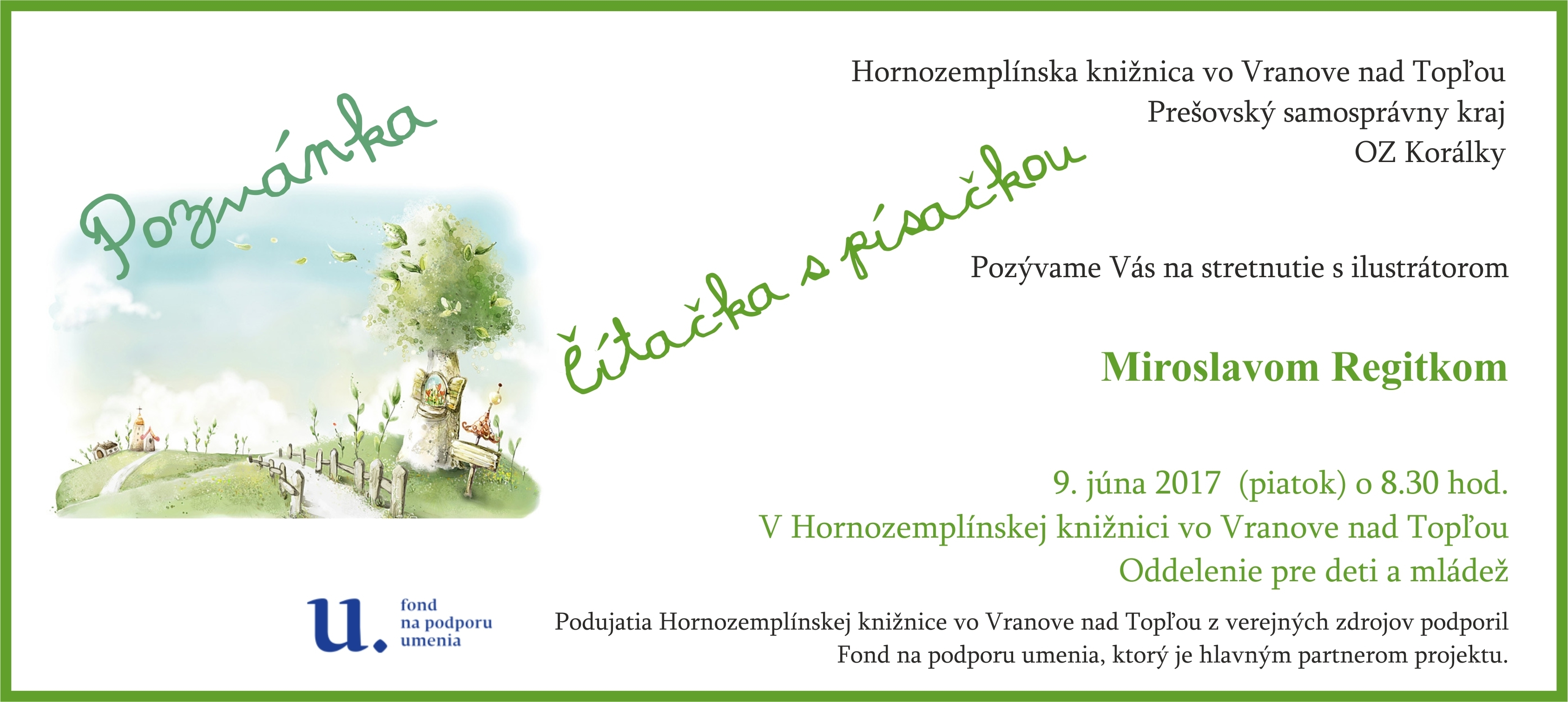 Podujatie sa konalo vďaka projektu Čítačka s písačkou, ktorý podporil https://www.facebook.com/Fond-na-podporu-umenia-1486436734982250/?fref=mentions" data-hovercard="/ajax/hovercard/page.php?id=1486436734982250&extragetparams=%7B%22fref%22%3A%22mentions%22%7D" data-hovercard-prefer-more-content-show="1" style="color: rgb(54, 88, 153); cursor: pointer; font-family: Helvetica, Arial, sans-serif; font-size: 14px; line-height: 19.32px; background-color: rgb(255, 255, 255);">Fond na podporu umenia.