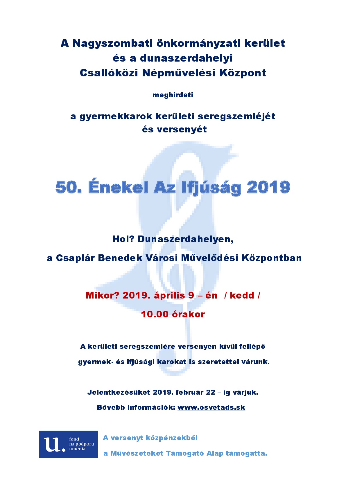 Mládež spieva 2019 - 50. jubilejný ročník krajskej postupovej súťaže a prehliadky detských speváckych zborov