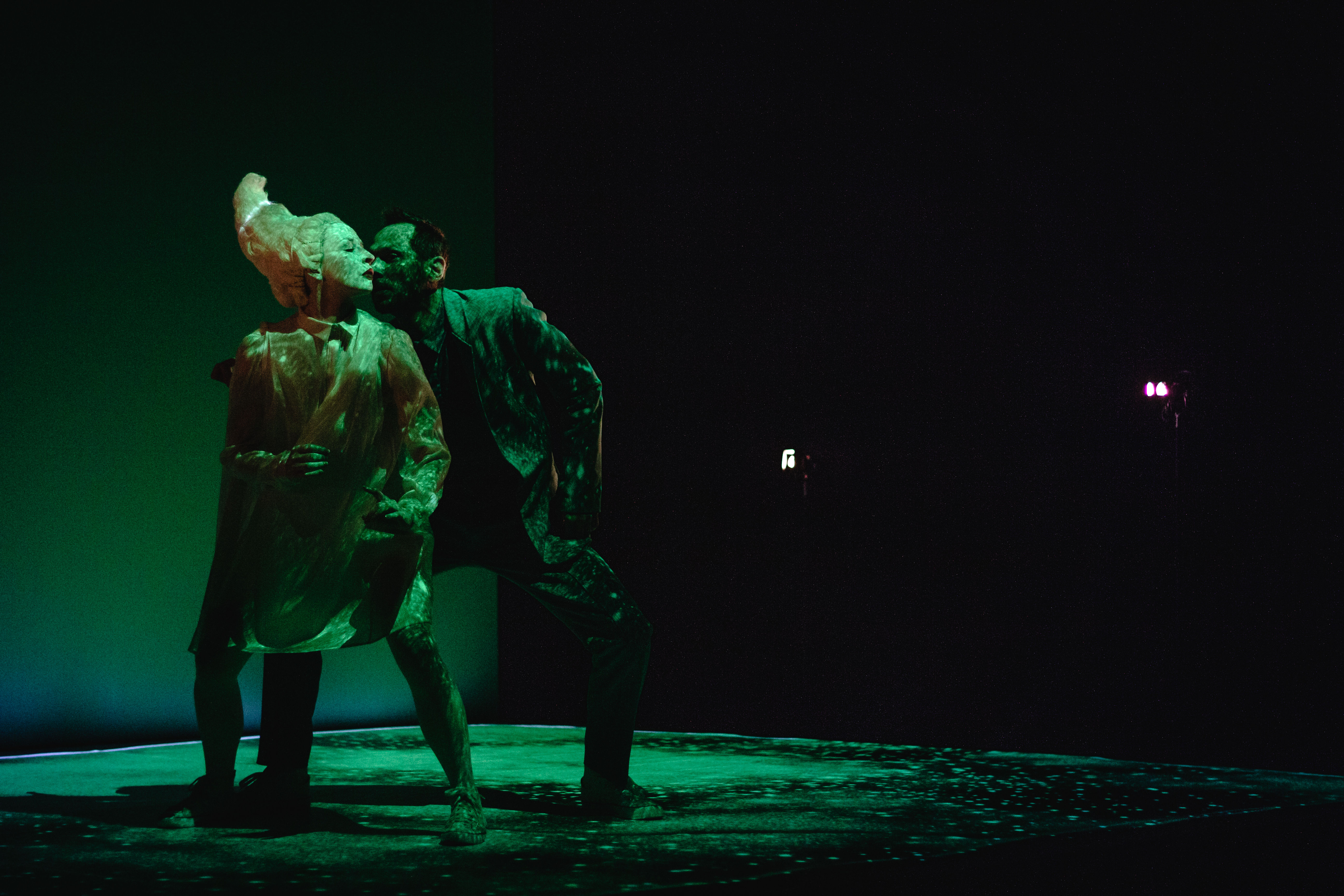 text E. Gindl, réžia, koncept: J. Vlk, choreografia S. Vlčeková , video art A. Zelina, výtvarné riešenie a svetelný dizajn J. Ptačin, kostýmy K. Holková, hudba J. Vlk, dramaturgia: D. Čiripová, J. Vlk, účinkujú: D. Raček, S. Vlčeková, A. Luptáková, whispering B. Mosný, produkcia M. Širáňová