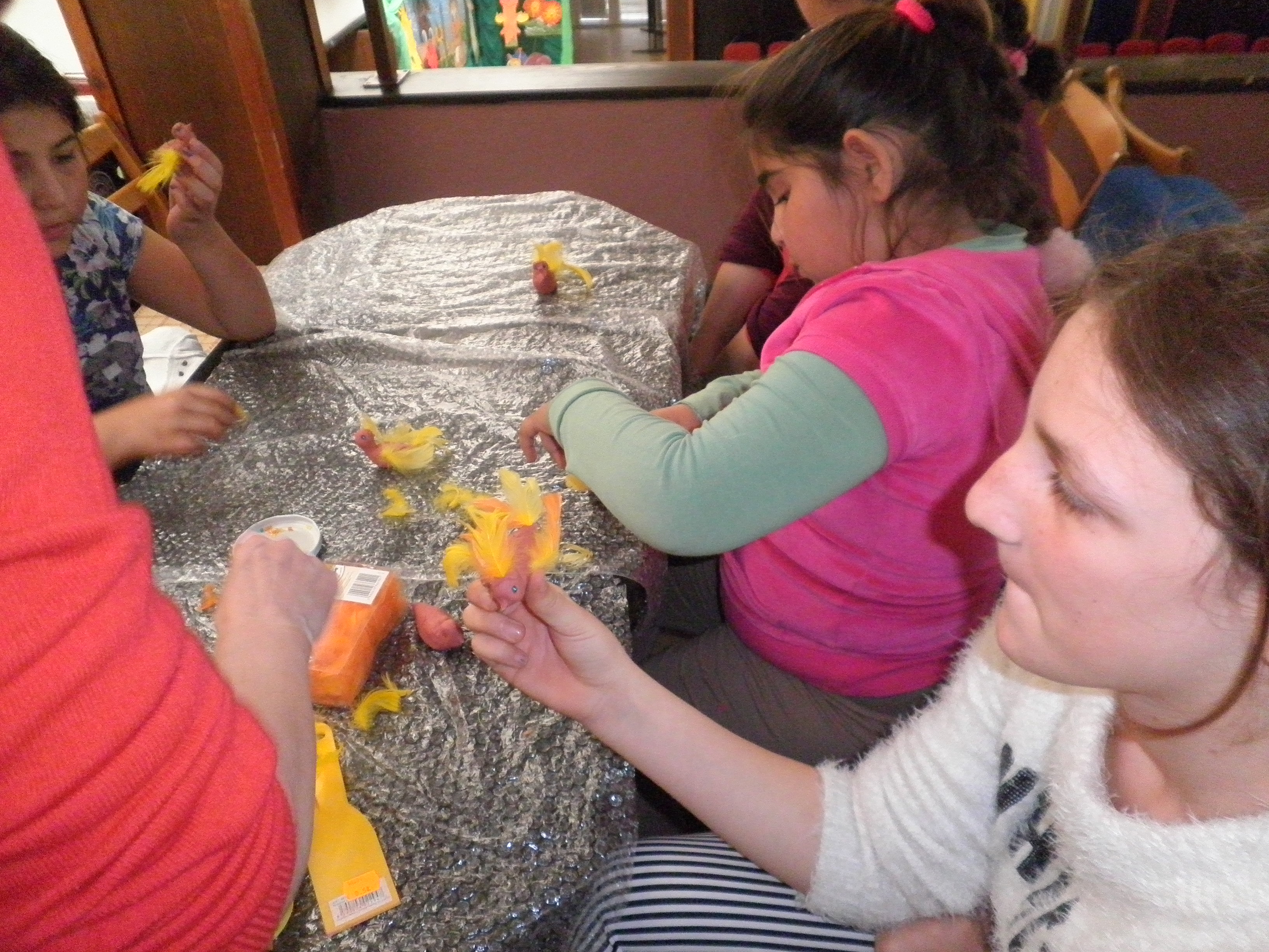 Na tvorivých dielňach sa snažíme vytvárať rôznou technikou zvieratká, vtáčiky, prírodu, les ..., čítame príbehy o zvieratkách, potom ich vytvárame...,