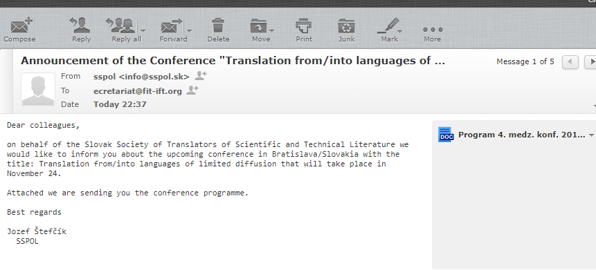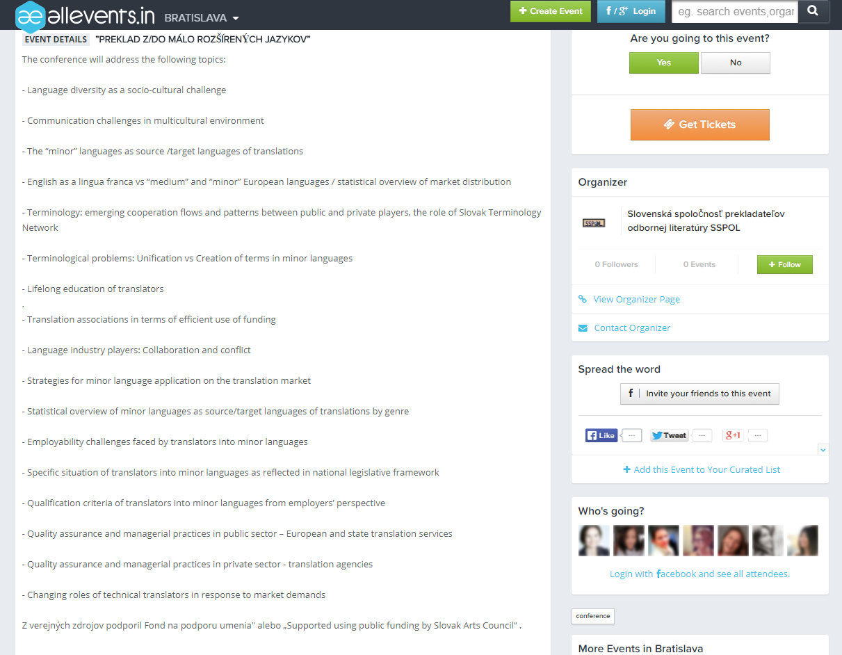 4. medzinárodná konferencia "Preklad z/do málo rozšírených jazykov" : Jazyk ako kultúrne dedičstvo