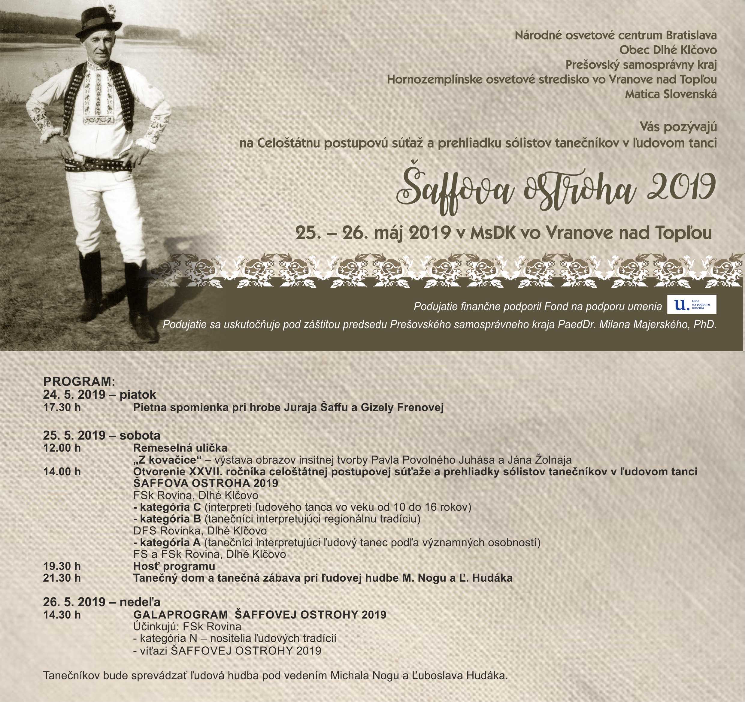 Celoštátna postupová súťaž a prehliadka sólistov tanečníkov v ľudovom tanci ŠAFFOVA OSTROHA 2019 - 27. ročník
