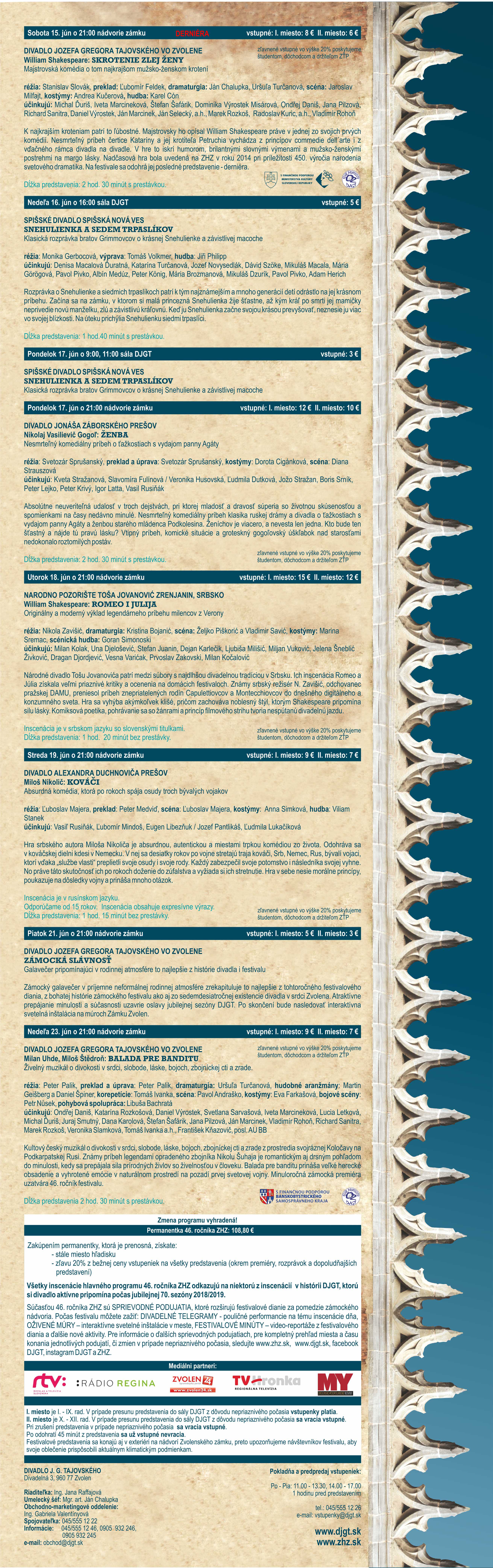 festivalu – tlačený programový bulletin 46. ročníka festivalu ZÁMOCKÉ HRY ZVOLENSKÉ.