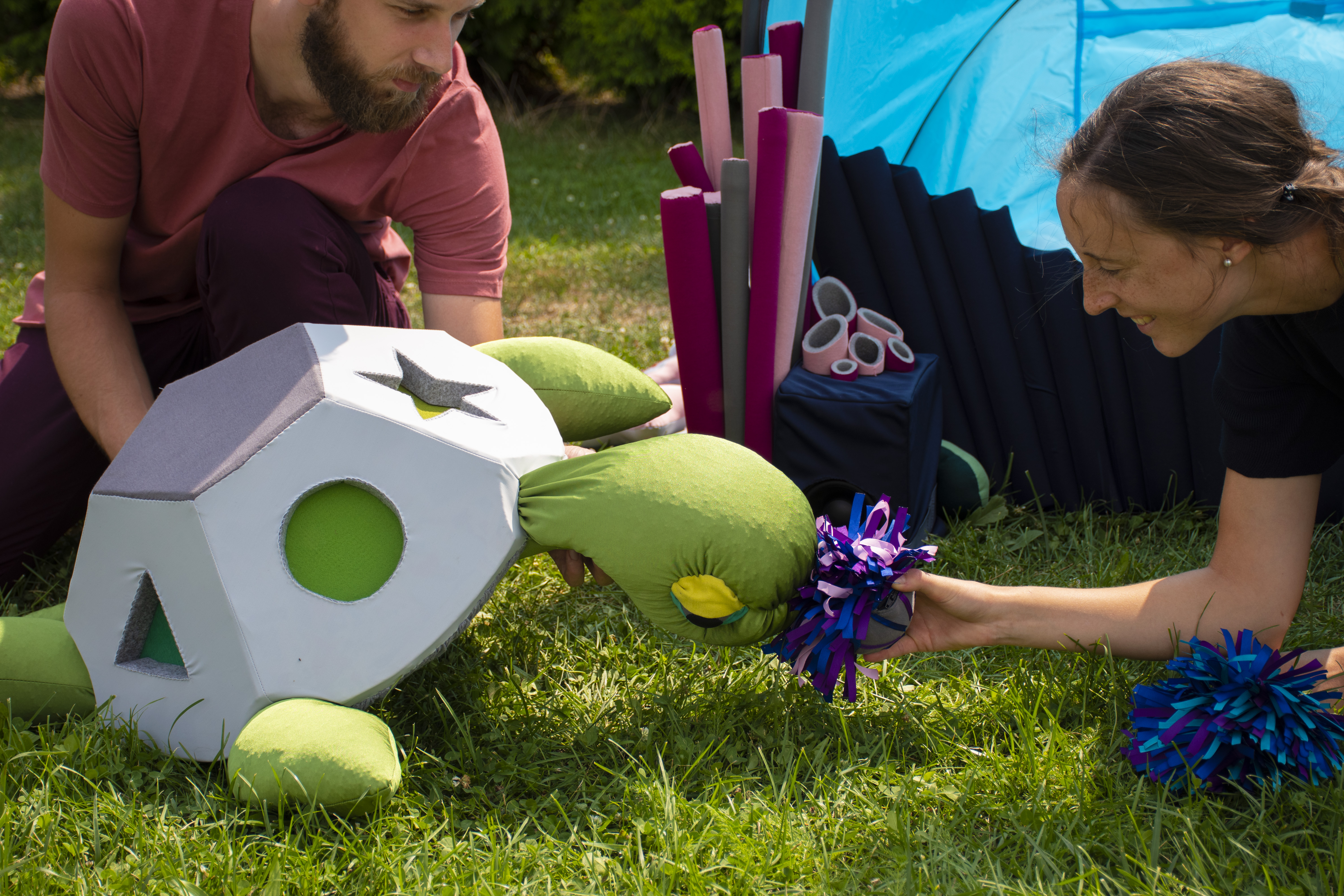Hlavný dôraz kladieme na spoznávanie základných tvarov (guľaté, rovné, hranaté, atď.). Batoľatá po celý čas vyvíjajú interakciu s bábkami, čím spoznávajú základné tvary a materiálové vlastnosti (hladké, drsné, jemné, atď.). Týmto rozvíjame jemnú motoriku a logické myslenie u detí.