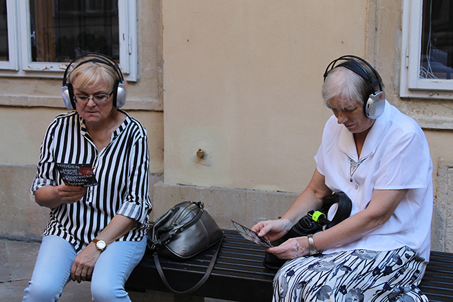 galérie a zabávali sa. Námestie Mirbachovho Paláca poskytlo ideálne miesto pre event, je dostatočne skryté pre účely Hidden Places Festival, ale zároveň v úplnom centre mesta, takže na nádvorie nazreli a sa zapojili ľudia, ktorí by bežne palác prehliadli.