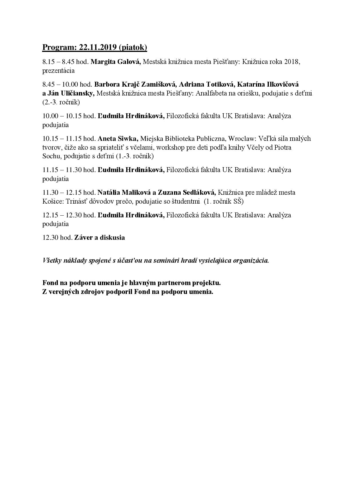Fond na podporu umenia nenesie žiadnu zodpovednosť za úplnosť, správnosť a pravdivosť, ako ani za legalitu údajov uvedených v tejto časti webového portálu FPU. Všetky zverejnené informácie, v textovej, hypertextovej alebo obrazovej forme sú výlučnou zodpovednosťou prijímateľa finančných prostriedkov poskytnutých Fondom na podporu umenia, ktorý preberá zodpovednosť za zverejnené informácie súhlasom s podmienkami FPU a samotným zverejnením informácií na webovom portáli FPU.