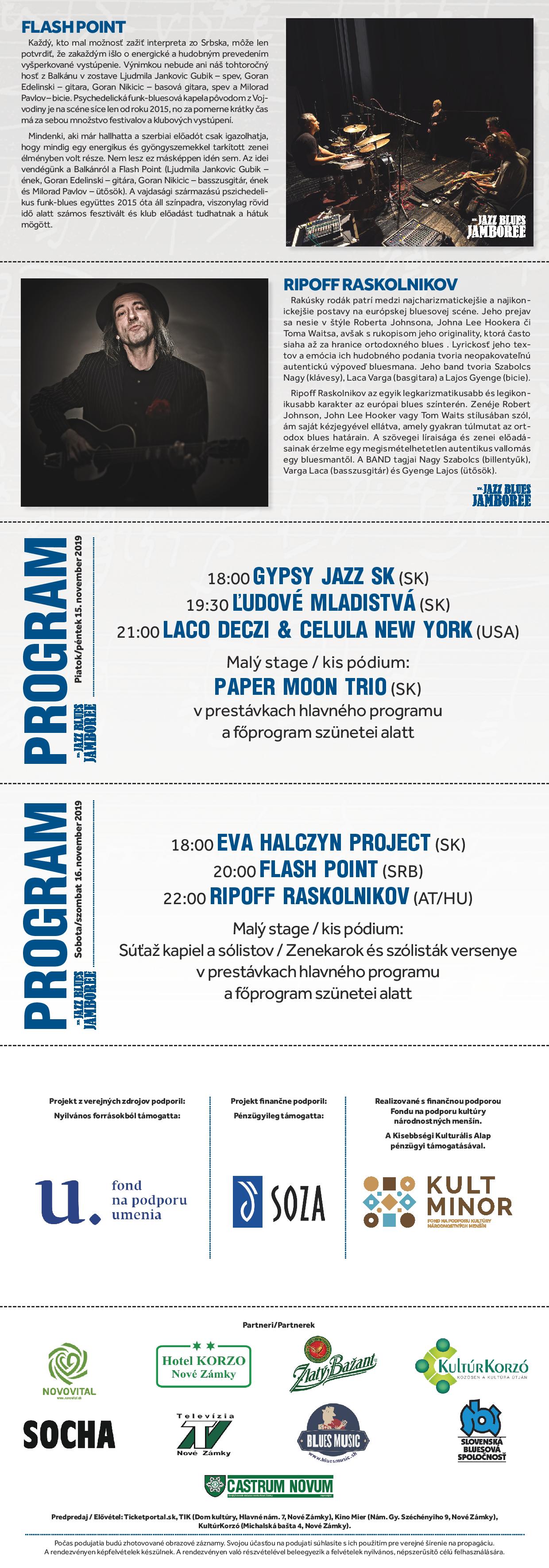 Aktéri, ktorí na novozámockom pódiu vystúpili, patria alebo patrili k elitným zástupcom svojich žánrov. Na festivale či v kluboch nám bolo cťou privítať velikánov, domácich i svetových, ako Ten Years After (UK), Mungo Jerry (UK), Wild Cow Sonny (HU), Deák Bill Gyula (HU), Sugar Blue (USA), Collegium Musicum (SK), Jiří Stivín (CZ), Swingless Jazz Ensemble (SK) či Mojo WorKings (HU). Ide skutočne len o malý zlomok z dlhého menoslovu interpretov. Každoročne sa na festivale objavili aj sólisti či zoskupenia z domácej scény, profesionálnej či amatérskej.
