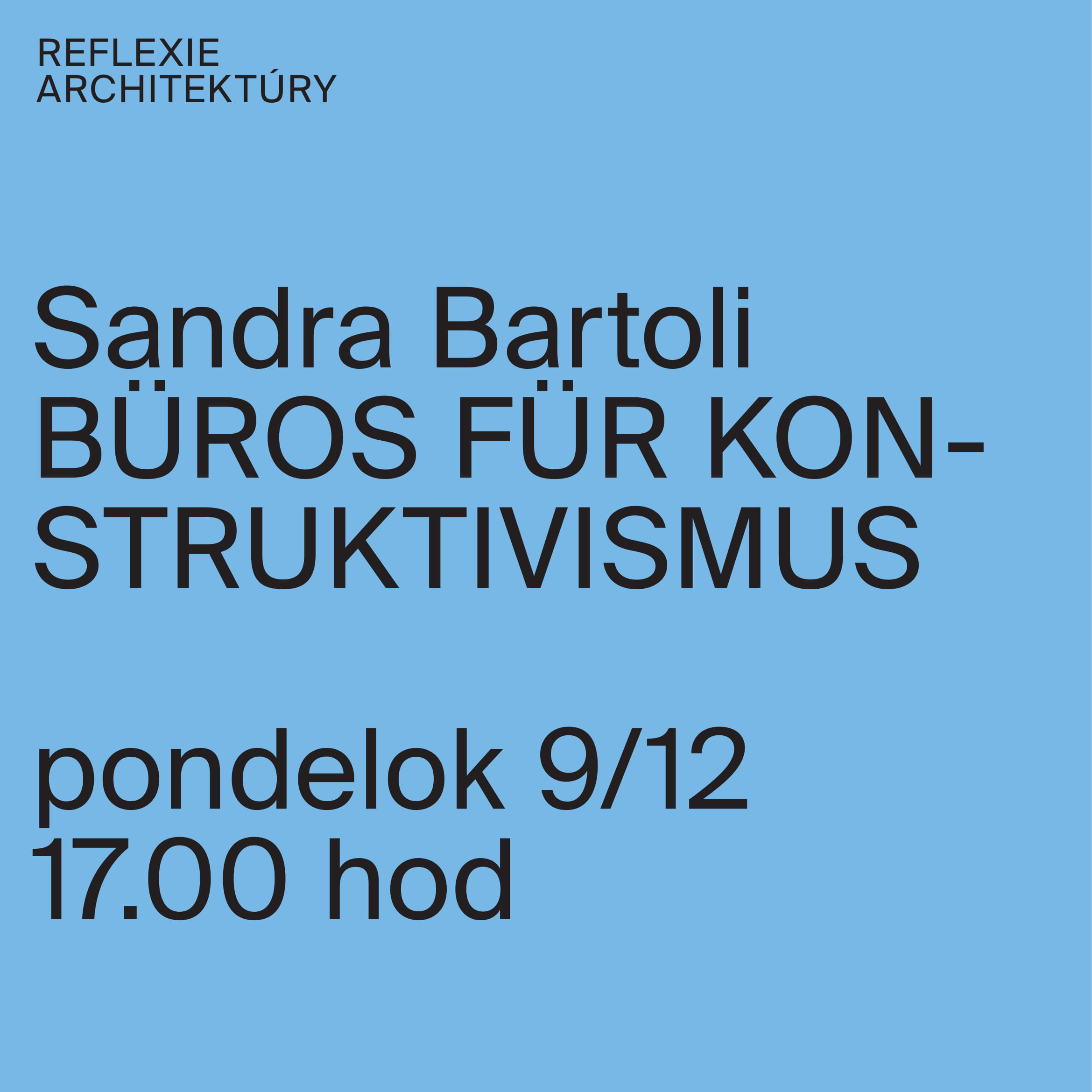 Sandra Bartoli je profesorka na Akadémii výtvarných umení vo Viedni, kde sa zaoberá výskumom vizionárskych miest. Študovala architektúru na Benátskej univerzite (IUAV) a záhradnú architektúru na University of Massachusetts. Jej kniha o Tiergarten v Berlíne, skúma aspekty ekológie, urbanizmu, dedičstva a humanizmu za účelom vytvorenia urbanistického modelu pre budúcnosť. Sandra Bartoli stojí spolu so Silvanom Lindenom za thinktankom http://buerofuerkonstruktivismus.de/" target="_blank" style="outline: none; color: rgb(25, 100, 255);">BÜROS FÜR KONSTRUKTIVISMUS, ktorý založili v roku 2006. Ich projekty pokrývajú rôzne škály, od nábytku a budov až po krajinu. Príkladom ich teoretickej práce je edičná edícia „Architektur in Gebrauch“ (Architecture in use).