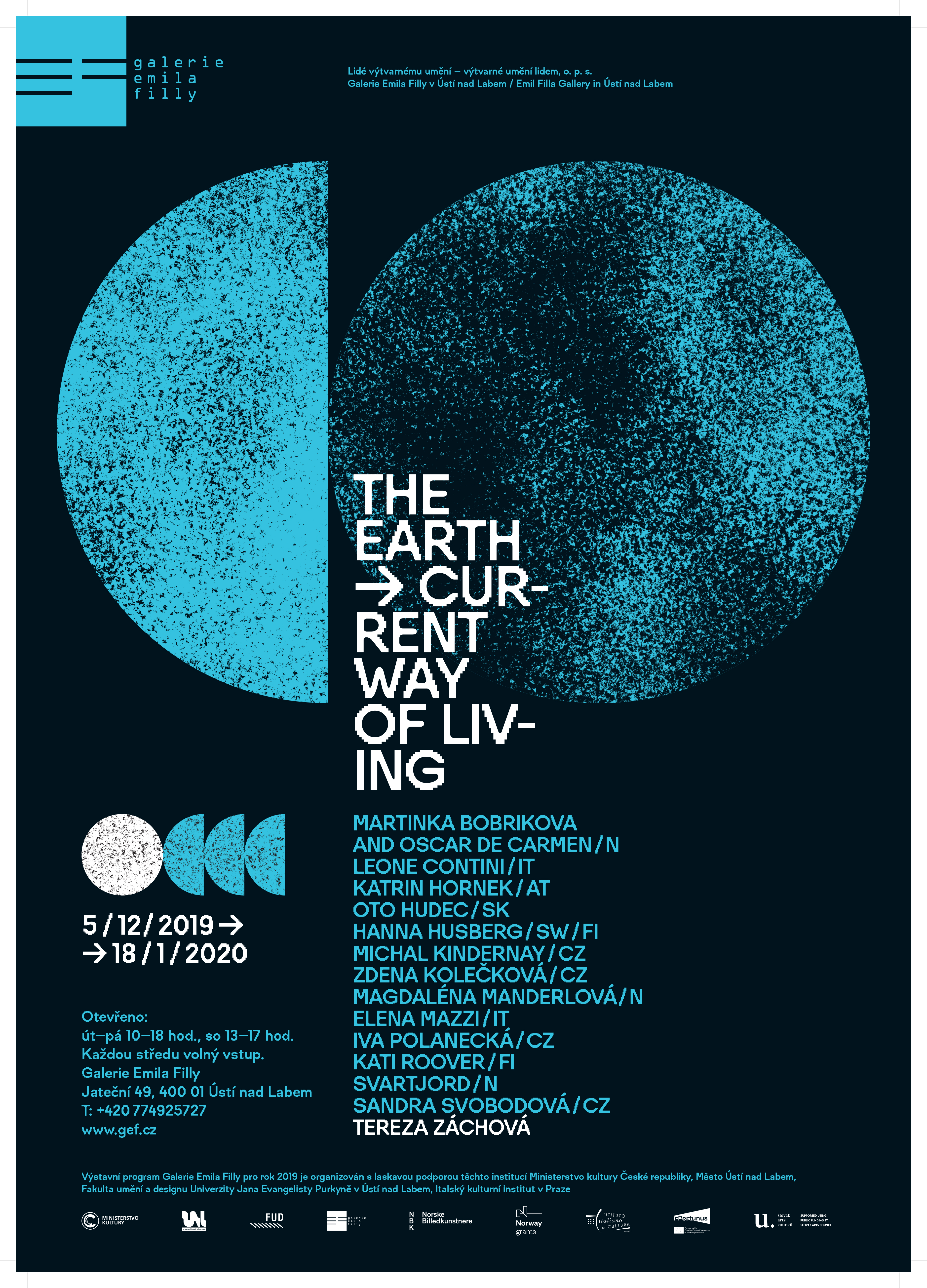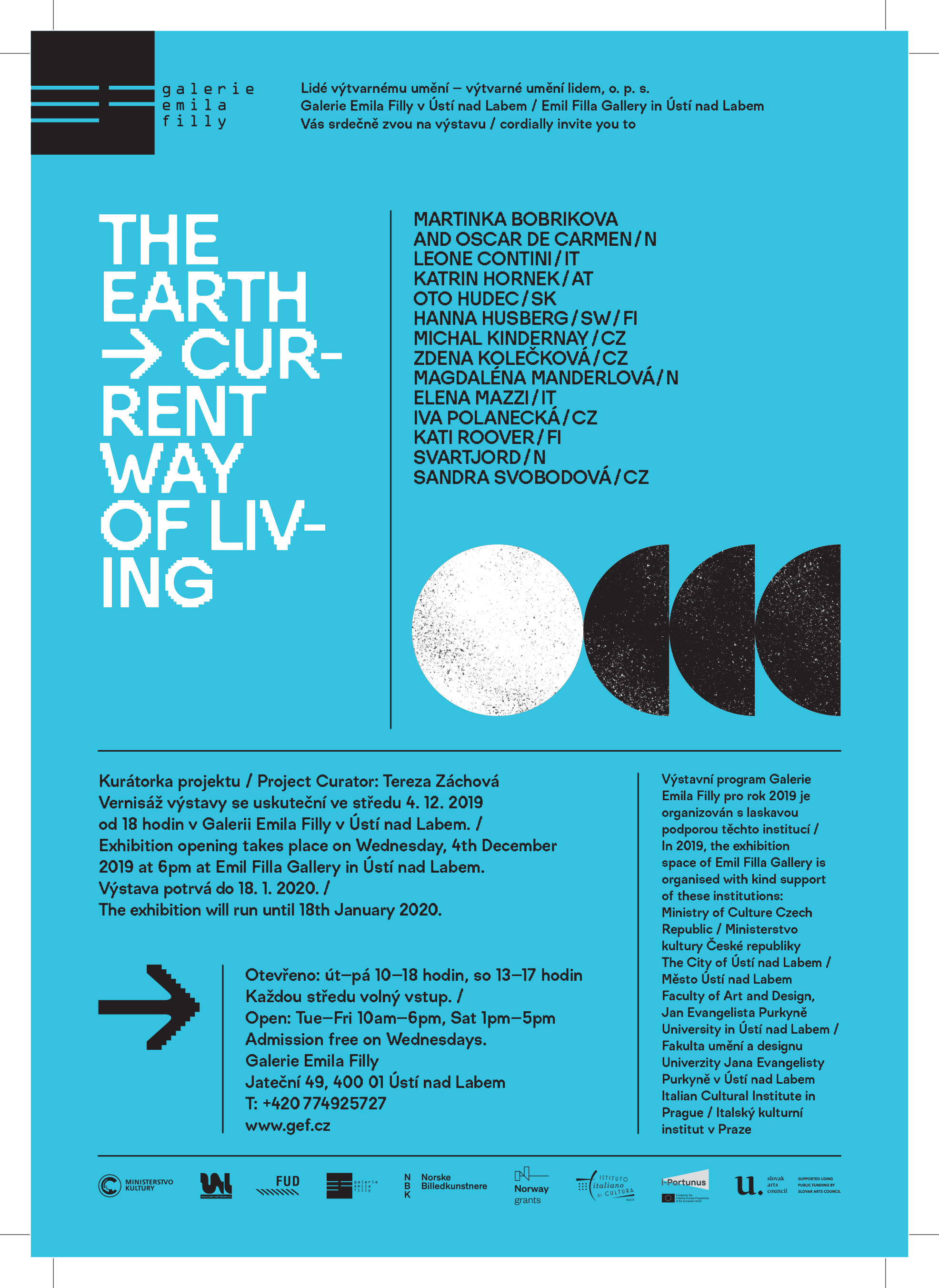 → Projekt se zabývá časem jako entitou, k čemuž zkoumá vztahy, které spojují člověka s jeho prostředím v souvislosti s post-humanistickým diskurzem a kritickou teorií. Umělecká díla řeší problémy reálného života – znečištění vzduchu a vody, strategie udržitelnosti, problémy s potravinami nebo nové pohledy na život zvířat a rostlin – aby poukázala na nápadně přehlížené pohledy v našem světě. A také na proces postupné změny, která se neodehrává jen v přírodě. Výstava “Země” zkoumá základní problémy ovlivňující zejména působení životního prostředí na lidstvo a naši planetu. Galerie se stává metaforou prostoru, kde se rodí nové myšlenky, možnosti a zkušenosti, a umělci je prostřednictvím svých děl mají možnost sdílet s diváky. Galerie se jako prostor stává svobodnou platformou, která umožňuje se demokraticky vyjádřit, a tak zde prezentovat či reflektovat problémy společnosti. Množství takových myšlenek se může zakládat na jisté deprivaci, na něčem, co nám určitým způsobem schází, což může samotný problém pomoci osvětlit. Prostor galerie se mění na naši zemi, kde můžeme sdílet problémy osobní i problémy kolektivního vědomí. Holistický obraz Země, ať už je množství odlišně vnímané reality jakékoliv, zmiňuje Karen Barad. Každý člověk může mít své vlastní, specifické vnímání Země. Výstava konkretizuje socio-environmentální krizi a setkává se v místě tváří v tvář s krajinou neodmyslitelně spjatou s Ústím nad Labem v České republice.