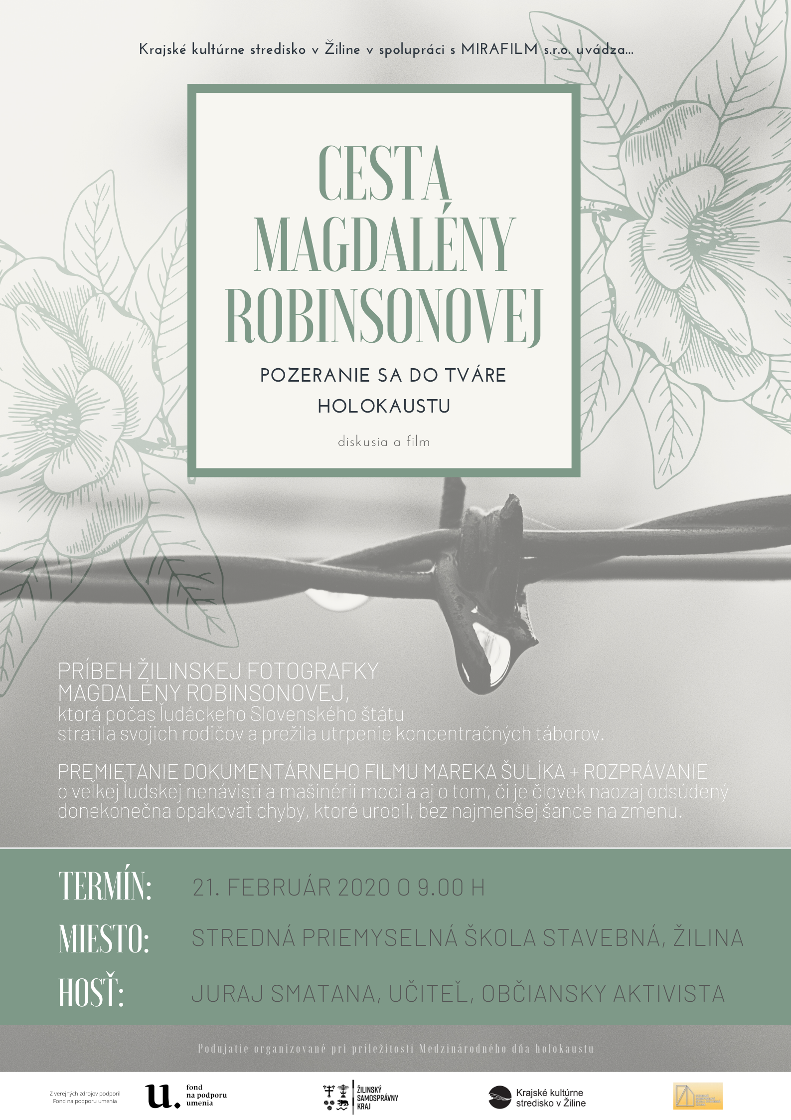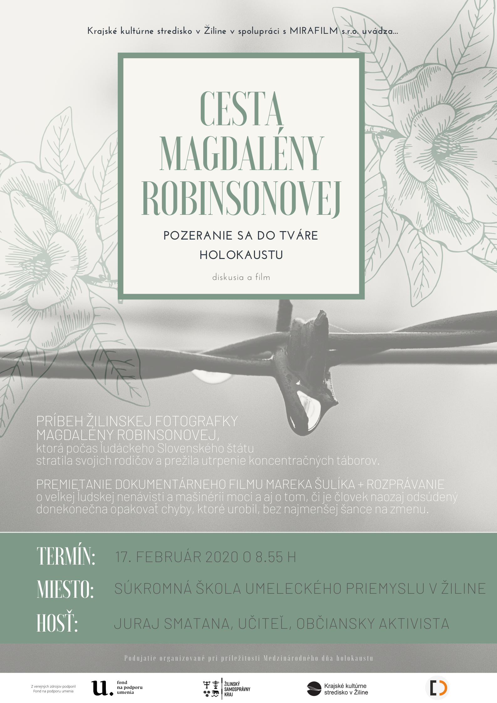 Príbeh žilinskej fotografky Magdalény Robinsonovej, ktorá počas ľudáckeho Slovenského štátu stratila svojich rodičov a prežila utrpenie koncentračných táborov.