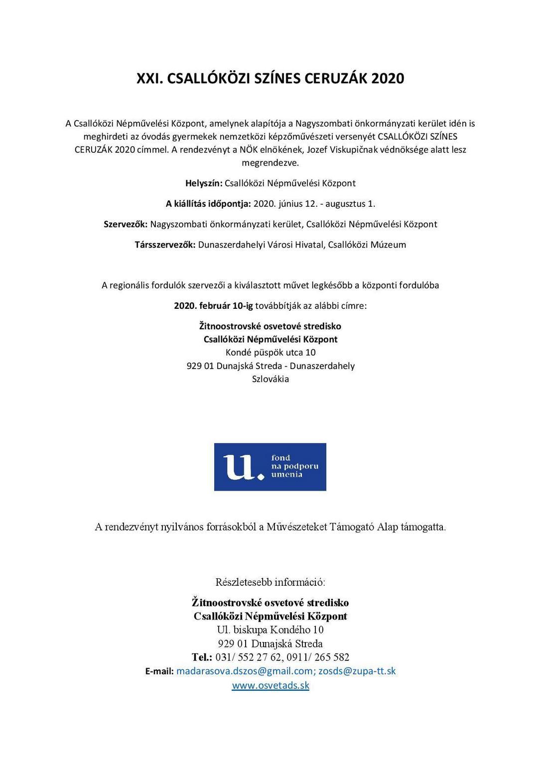 XXI. Žitnoostrovské pastelky 2020 – medzinárodná súťaž výtvarnej tvorivosti detí predškolského veku Posolstvá lásky, radosti a nádeje, že svet nebude, ale už teraz je lepší.