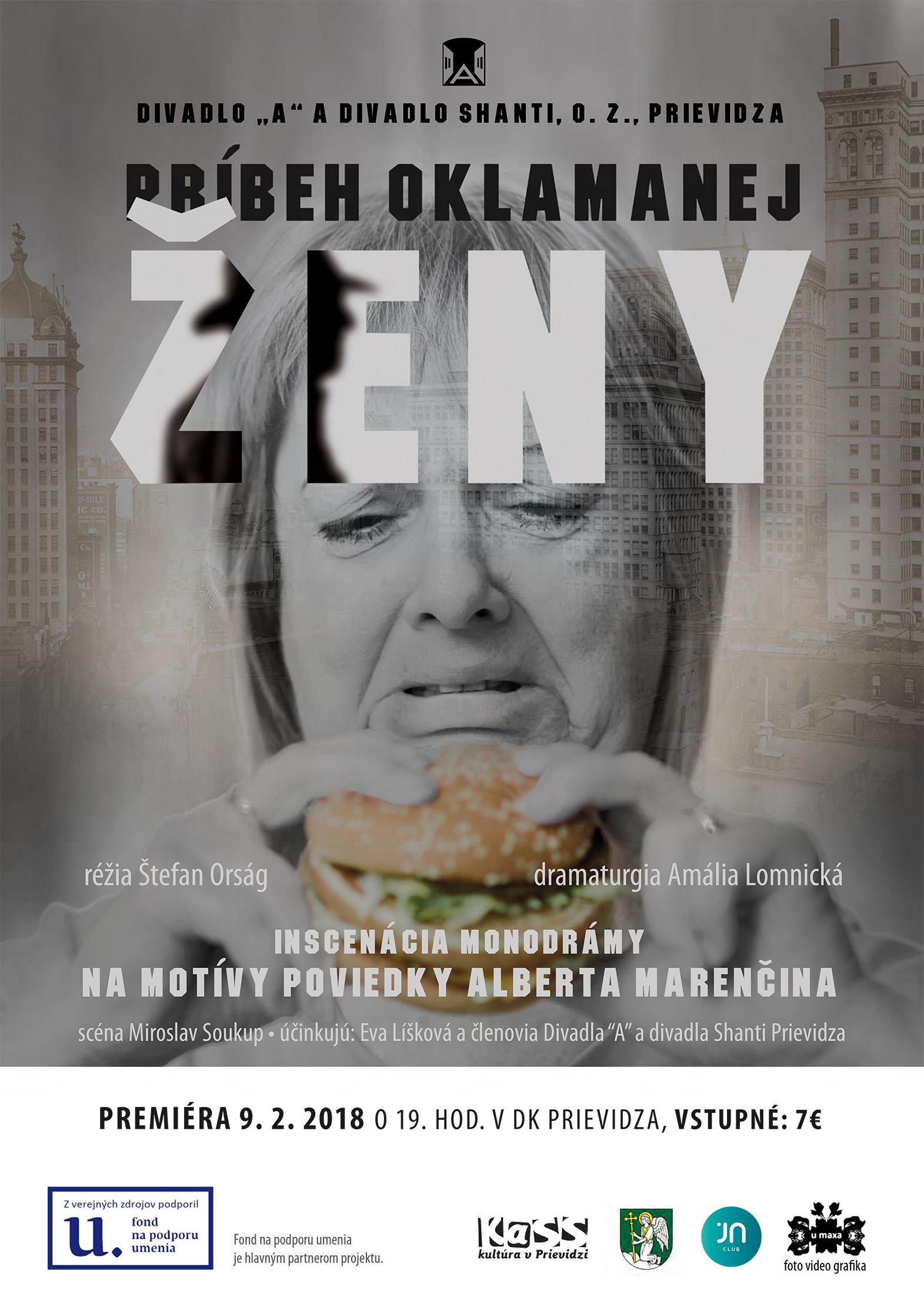 Naštudovanú inscenáciu na motívy poviedky Alberta Marenčina z knihy Kacírske myšlienky uvedie Divadlo A a divadlo Shanti o.z. vo svojej 65. divadelnej sezóne v Dome kultúry v Prievidzi 9. februára 2018 v réžii Štefana Orsága a dramatizácii Amálie Lomnickej. Scénografiu k inscenácii navrhol a vyhotovil významný hornonitriansky scénograf Miroslav Soukup, kostýmy pripravila Viera Boronkayová, ktorá je zároveň koordinátorkou projektu. Súčasťou projektu z hľadiska režijnej a scénografickej koncepcie je obrazová projekcia a projekcia filmových miniatúr, ktorú pripravil Maximilián Kormaňák. Úlohy hlavnej predstaviteľky sa ujala dlhoročná členka divadla Eva Líšková. Inscenácia je zároveň holdom jej výnimočnému herectvu pri príležitosti 6o. výr. narodenia, ktoré dovŕši v apríli tohto roku. V sprievodných, epizódnych scénach inscenácie a filmových miniatúrach účinkujú ďalší členovia Divadla A a divadla Shanti.