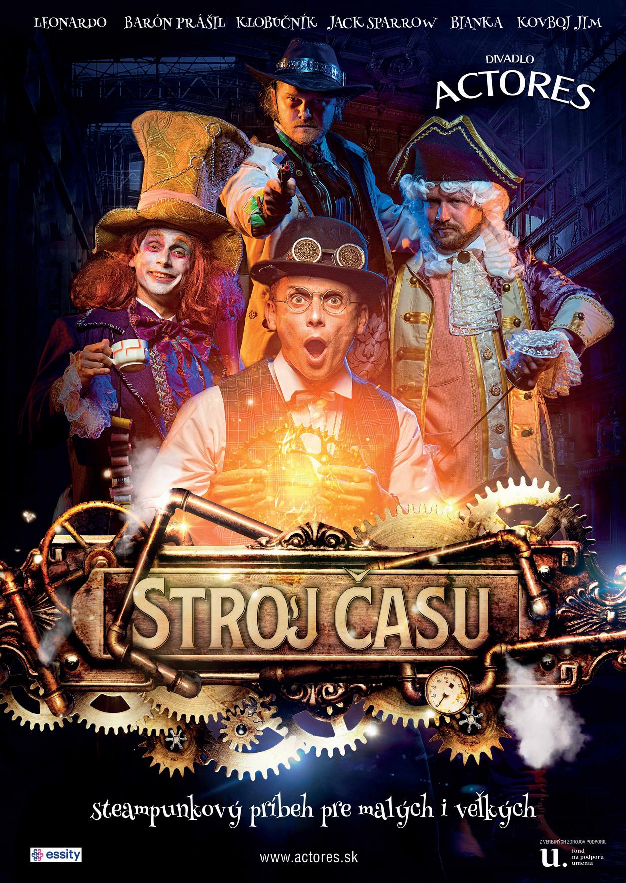 Steampunkový príbeh o dobrodruhovi Leonardovi, ktorý zostrojuje stroj času a stretáva bytosti zo sveta fantázie: Baróna Prášila, Princeznú Bianku, Jacka Sparrowa, Klobučníka z krajiny OZ ba i čarodeja Kardaua… Dej je popretkávaný nečakávanými zápletkami, komickými situáciami, zrozumiteľnými fyzikálnymi veličinami a pesničkami. Stroj času na javisku nášho divadla je rovnakou dôležitou postavou: naparuje sa, fučí, vydáva zvuky, dymí, svetielkuje…