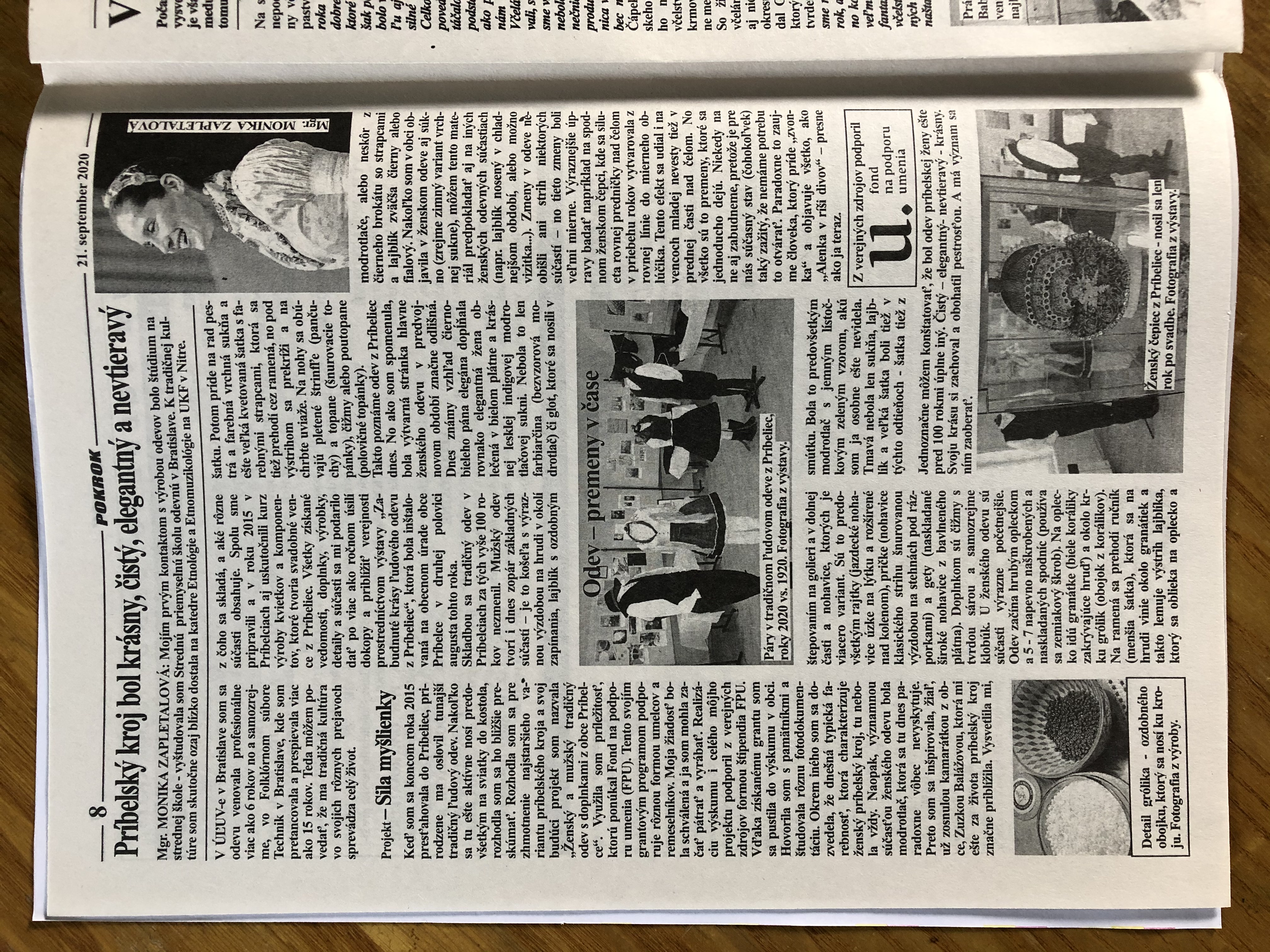 V týždenníku POKROK, ktorý vychádza vo Veľkom Krtíši každý týždeň, bol uverejnený článok približujúci celú projekt premeny tradičného ľudového odevu z obce Príbelce. Článok je na jednu stranu o veľkosti A4 a zaoberá sa popisom myšlienky vzniku môjho záujmu o tento odev, i projektom celkovo.